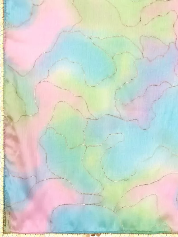 Crafted from high-quality georgette and chinon shiffon fabrics, this saree offers a luxurious texture and a comfortable feel against the skin. Georgette fabric lends a lightweight and airy quality to the saree, while chinon shiffon adds a subtle sheen and elegance. Together, they create a harmonious blend of textures and finishes that elevate your look with sophistication.