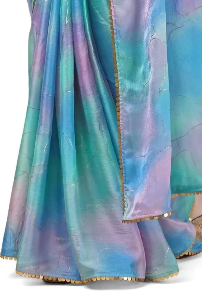 Versatility: Whether you're attending a festive celebration, a formal gathering, or a casual outing, the "Siya Sky Blue Chinon Shiffon Print Saree" is your go-to choice. Its versatile design ensures you can style it with various accessories to suit the occasion.