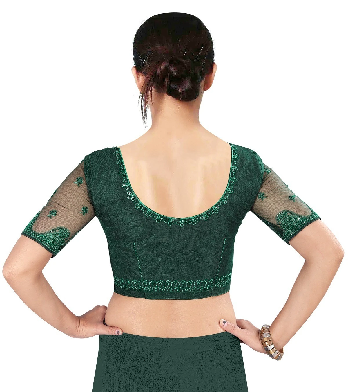 Solid Dark Green Party Wear Saree With BANGLORI NET Blouse