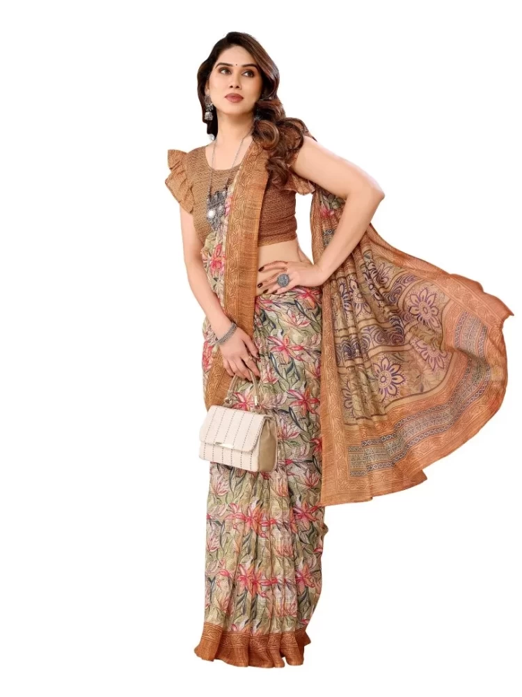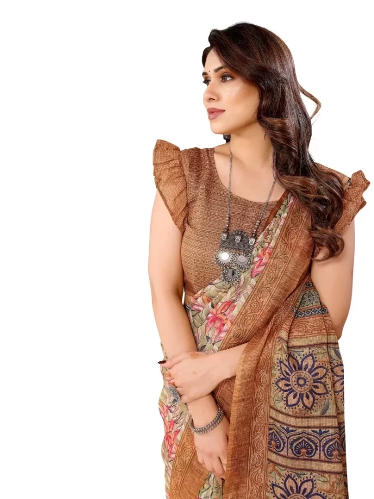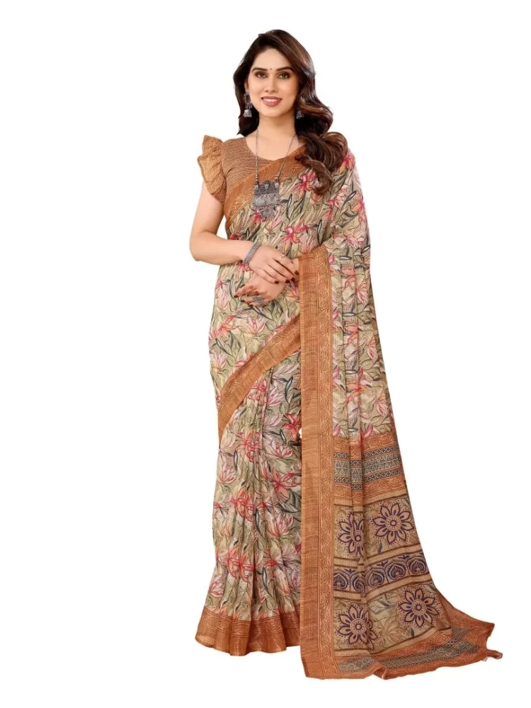 Tag: printed saree women wear ethnic wear women clothes clothing girls tulsi printed saree cofee