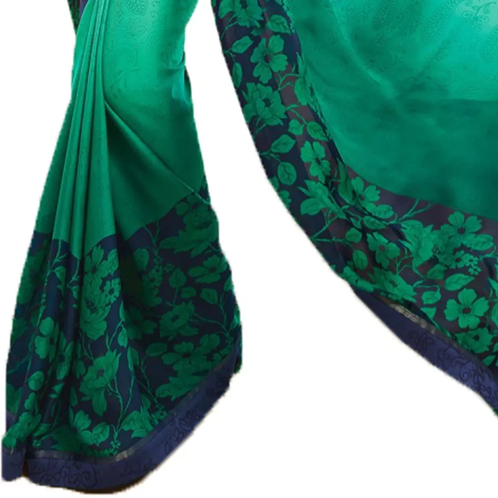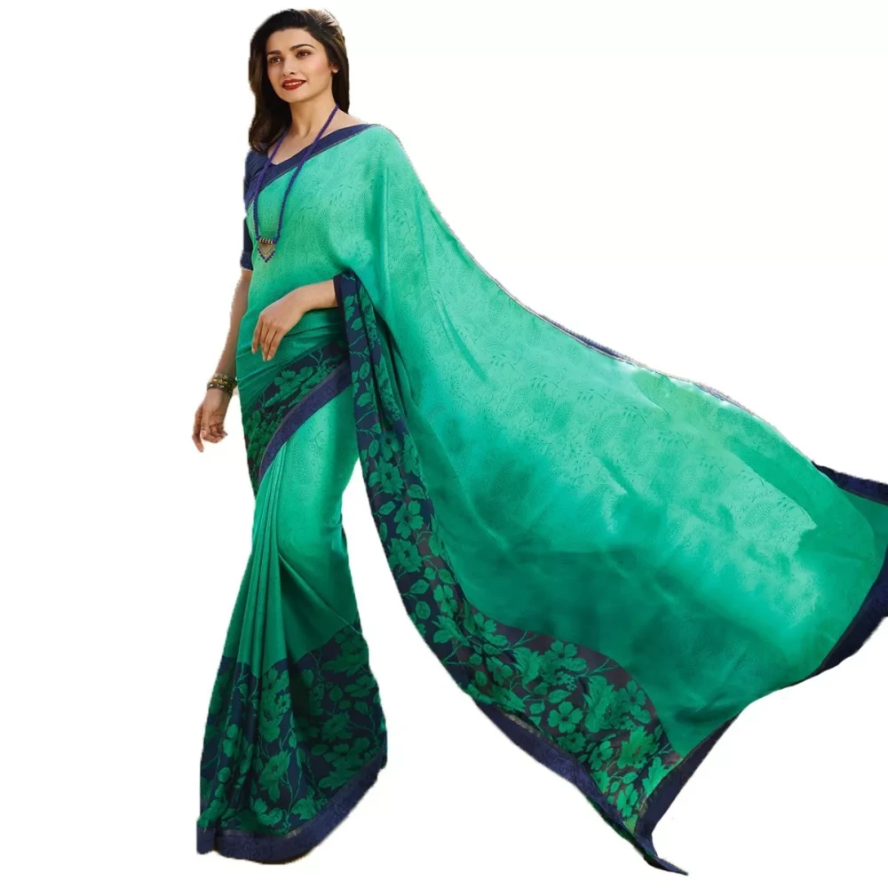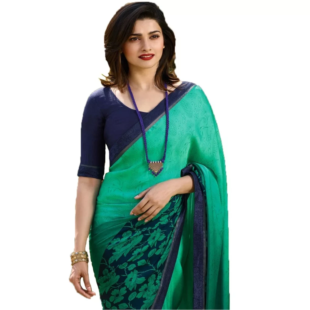 Complementing the saree is a matching banglory blouse in a coordinating sea green hue, ensuring a harmonious and polished look. The blouse features a classic design that complements the saree's vibrant color and printed pattern, enhancing its overall appeal. Crafted from high-quality banglory fabric, the blouse offers a comfortable fit and effortless elegance.
