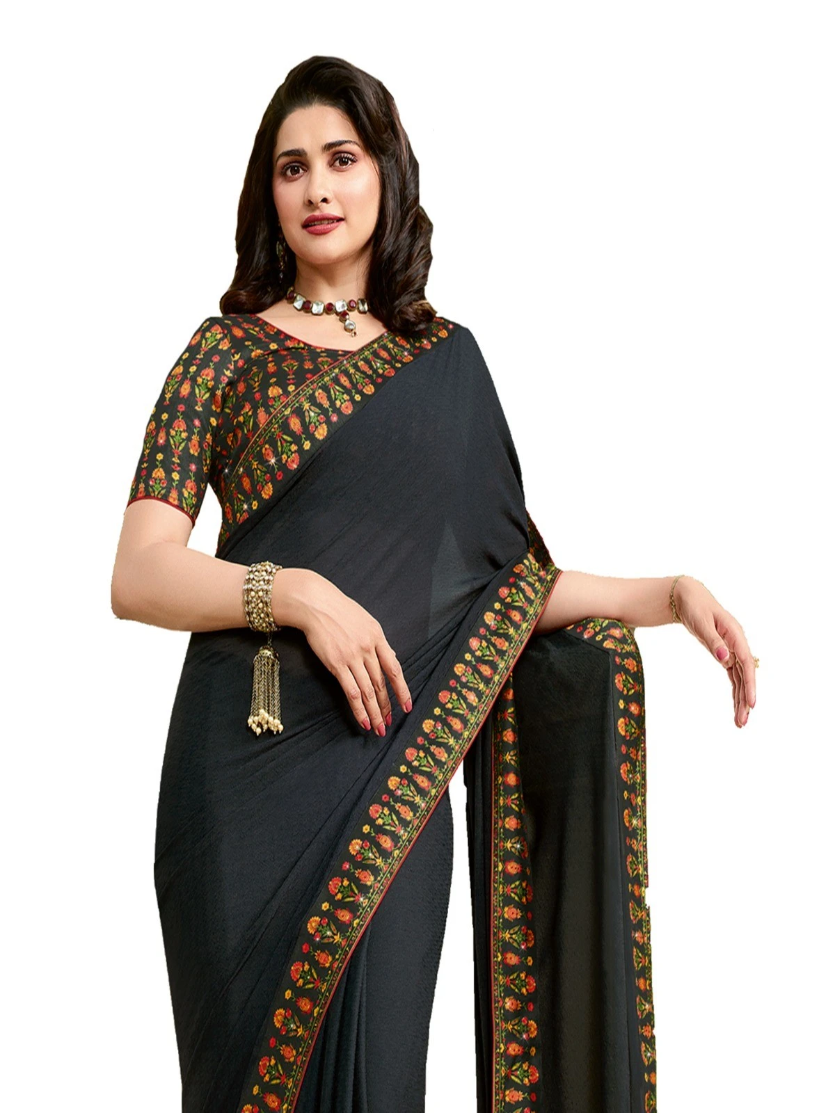 Pattern: Adorned with a captivating Digital Print, this saree exudes contemporary charm and artistic flair. The Digital Print features intricate motifs and vibrant hues, adding a modern twist to the classic black saree. The combination of the plain saree base and the striking Digital Print creates a harmonious balance between tradition and innovation, making it a perfect choice for modern women with a penchant for style.