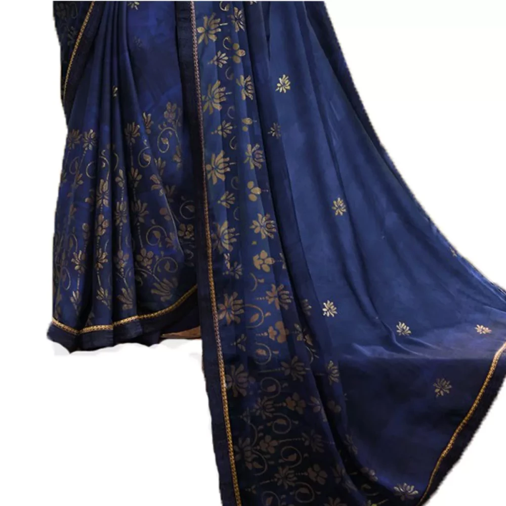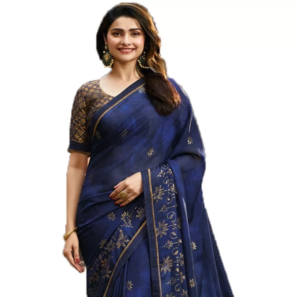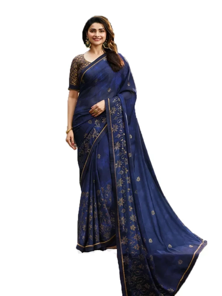 Adding to the allure of this saree is its captivating printed pattern. The delicate motif adds a feminine touch and lends a contemporary edge to the ensemble, making it a versatile choice for various occasions. Whether worn during the day or evening, the printed pattern adds visual interest and charm to the saree, ensuring you look effortlessly chic and stylish.