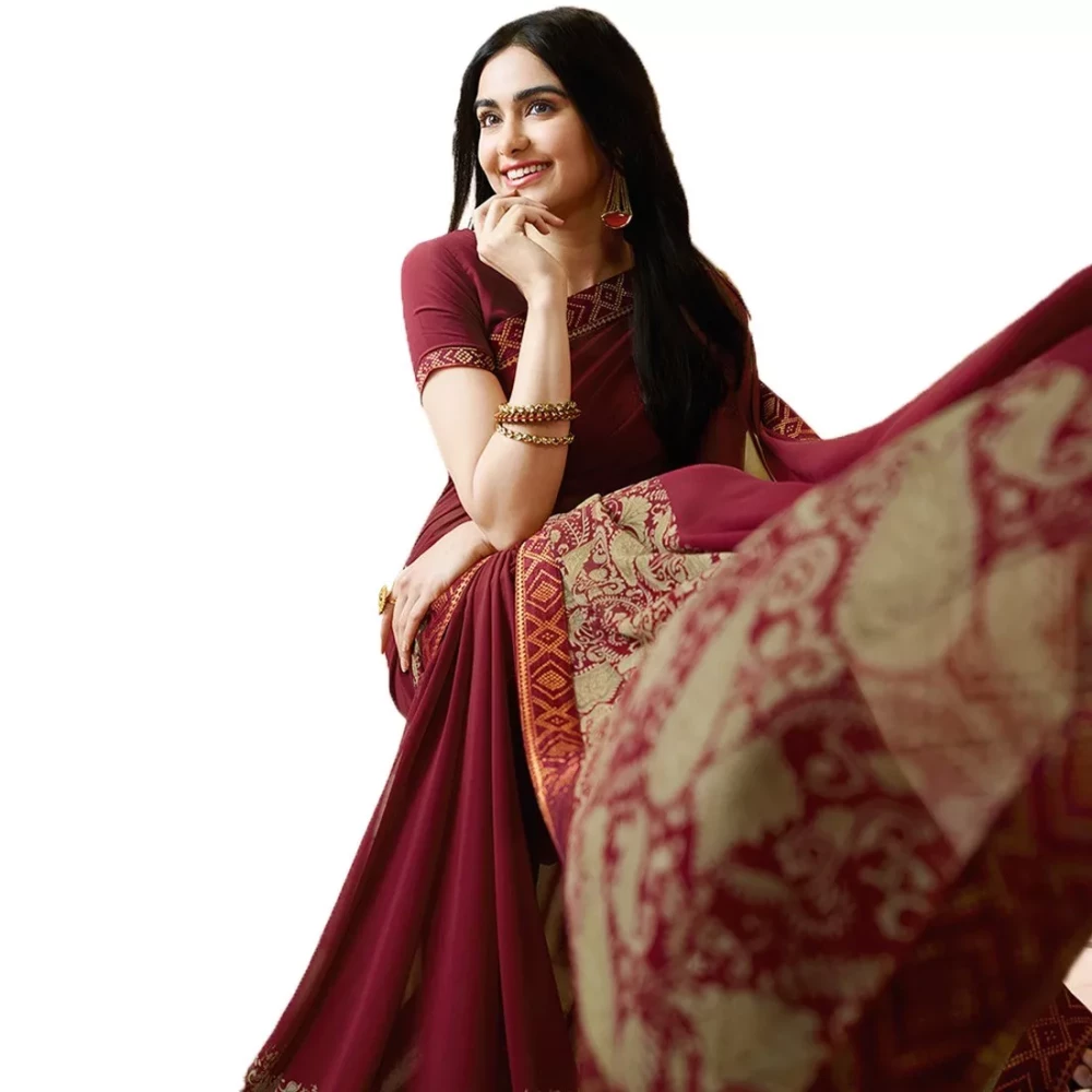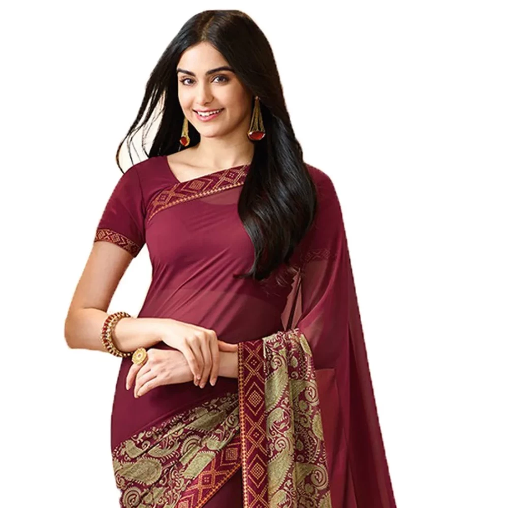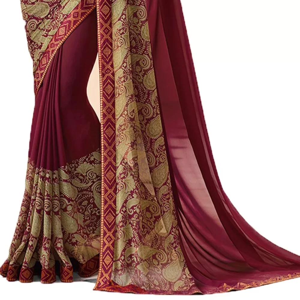 Elevate your ethnic wardrobe with our stunning Women's Printed Georgette Maroon Saree with Plain Blouse, a perfect blend of tradition and contemporary style. Crafted meticulously with high-quality georgette fabric in an elegant maroon hue, this saree exudes sophistication and grace. The saree features a mesmerizing printed pattern that adds an element of charm and allure to your ensemble, making it ideal for special occasions, parties, and festivities.