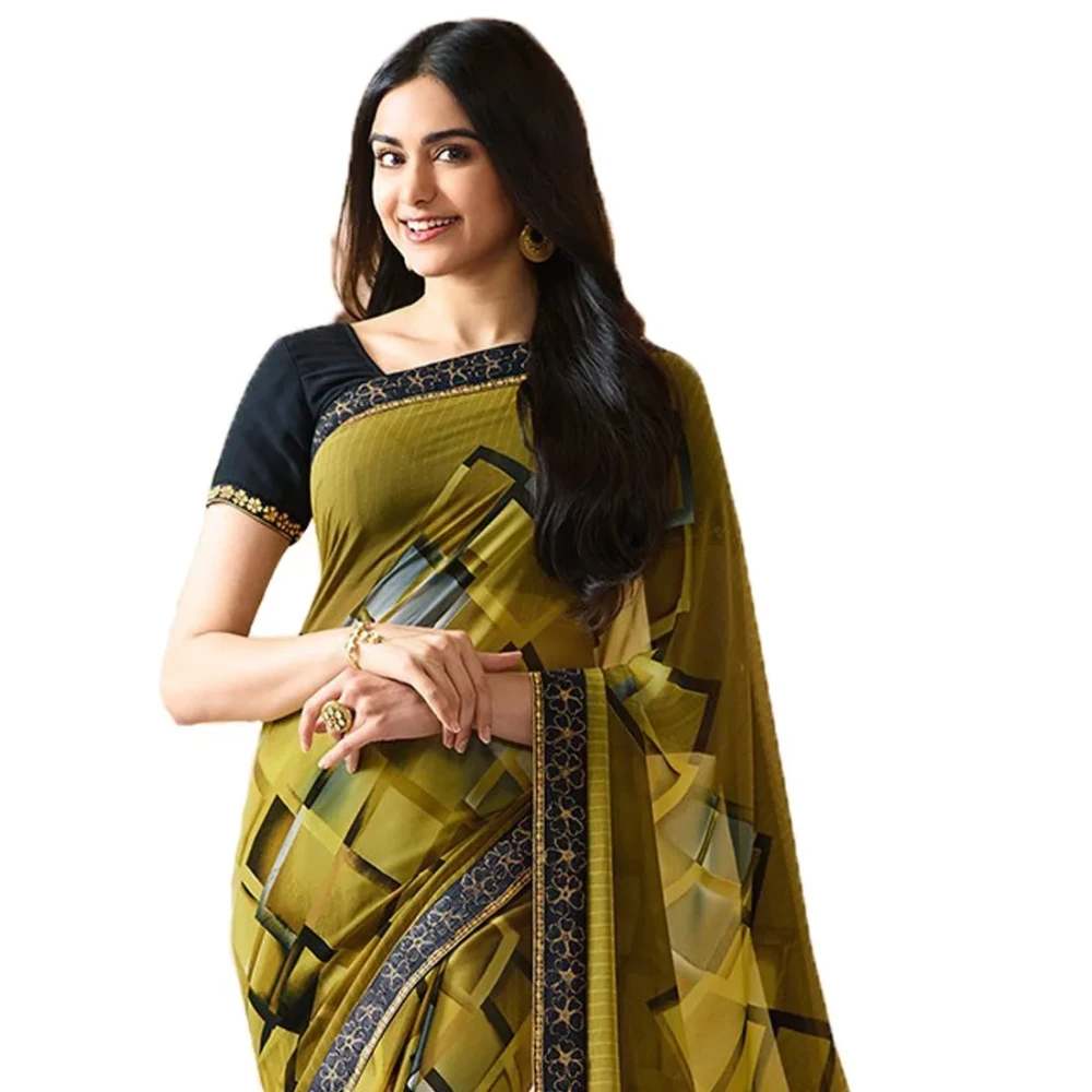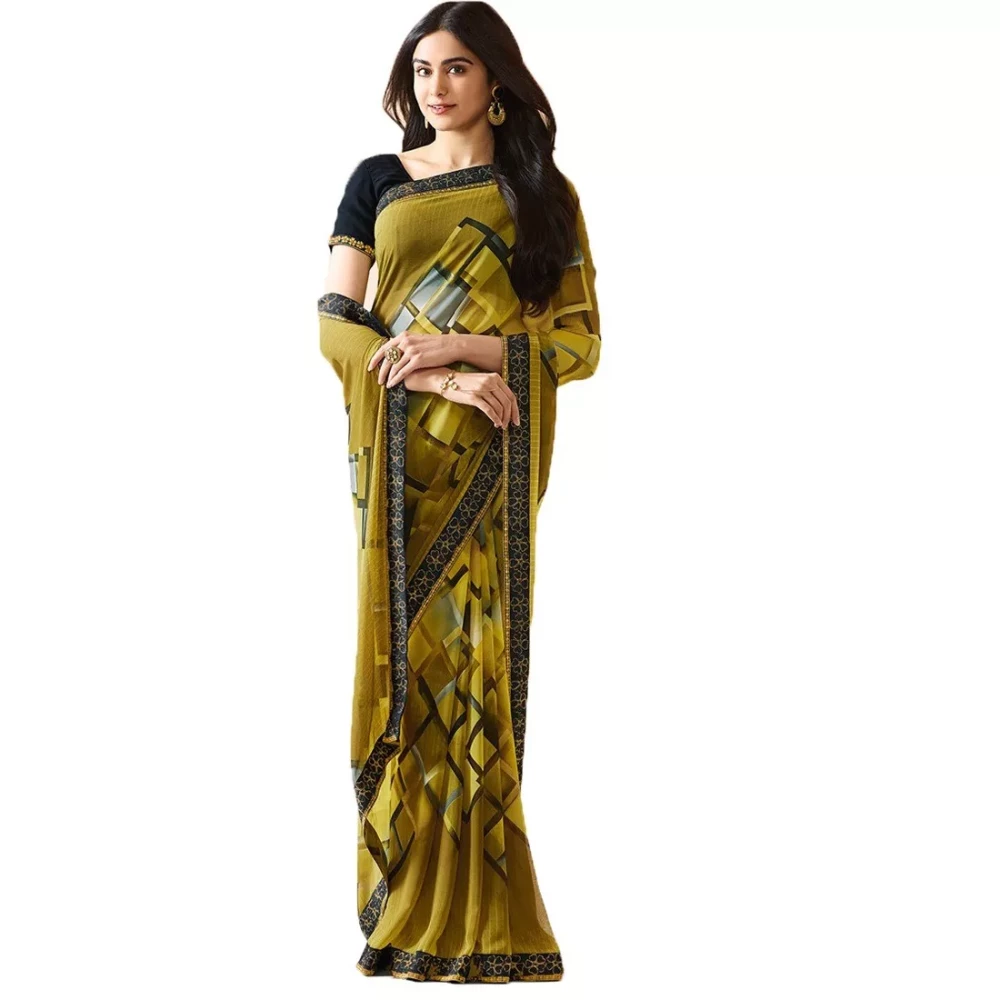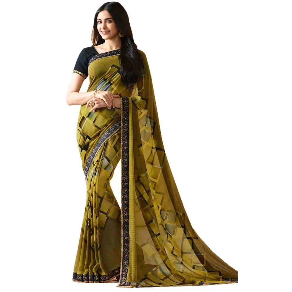 Introducing our Women's Printed Georgette Mehindi Saree with Plain Blouse, a captivating ensemble that blends traditional charm with contemporary elegance. Crafted from luxurious georgette fabric in a stunning mehindi green hue, this saree exudes sophistication and grace, making it an ideal choice for various occasions. Paired with a sleek plain blouse made from Banglory fabric, this saree offers a modern interpretation of traditional attire, ensuring you stand out with effortless style.