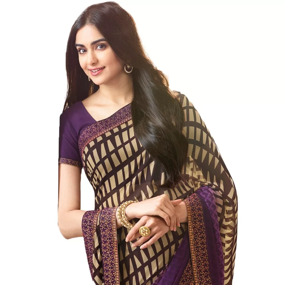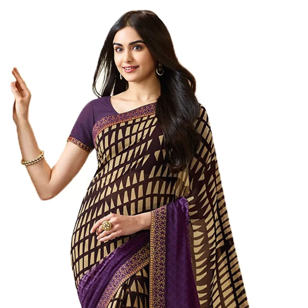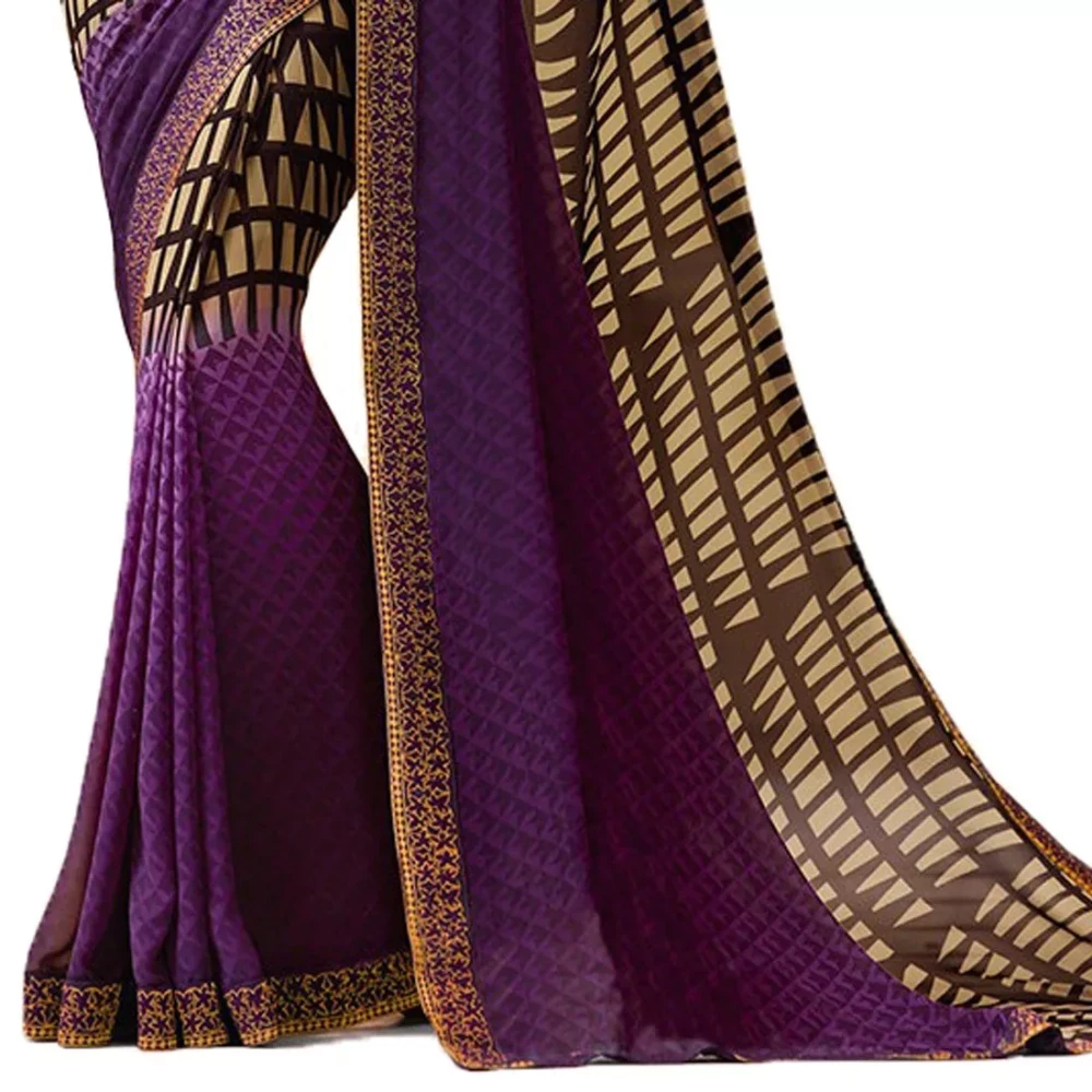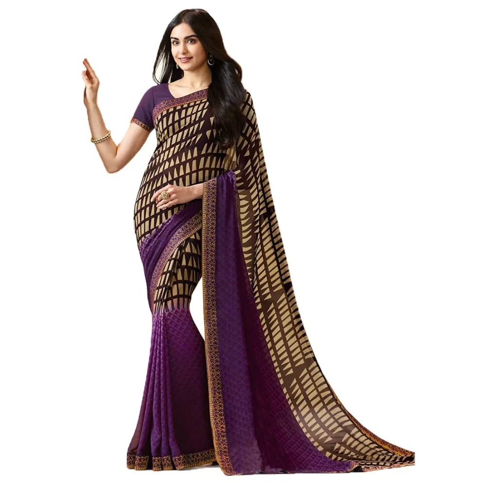 Women's Printed Georgette Purple Saree with Plain Blouse, a captivating ensemble that effortlessly combines elegance and style. Crafted from premium georgette fabric in a rich purple hue, this saree exudes sophistication and grace, making it perfect for any special occasion or festive celebration. Paired with a chic plain blouse made from Banglory fabric, this saree offers a timeless yet modern look that is sure to make a statement wherever you go.