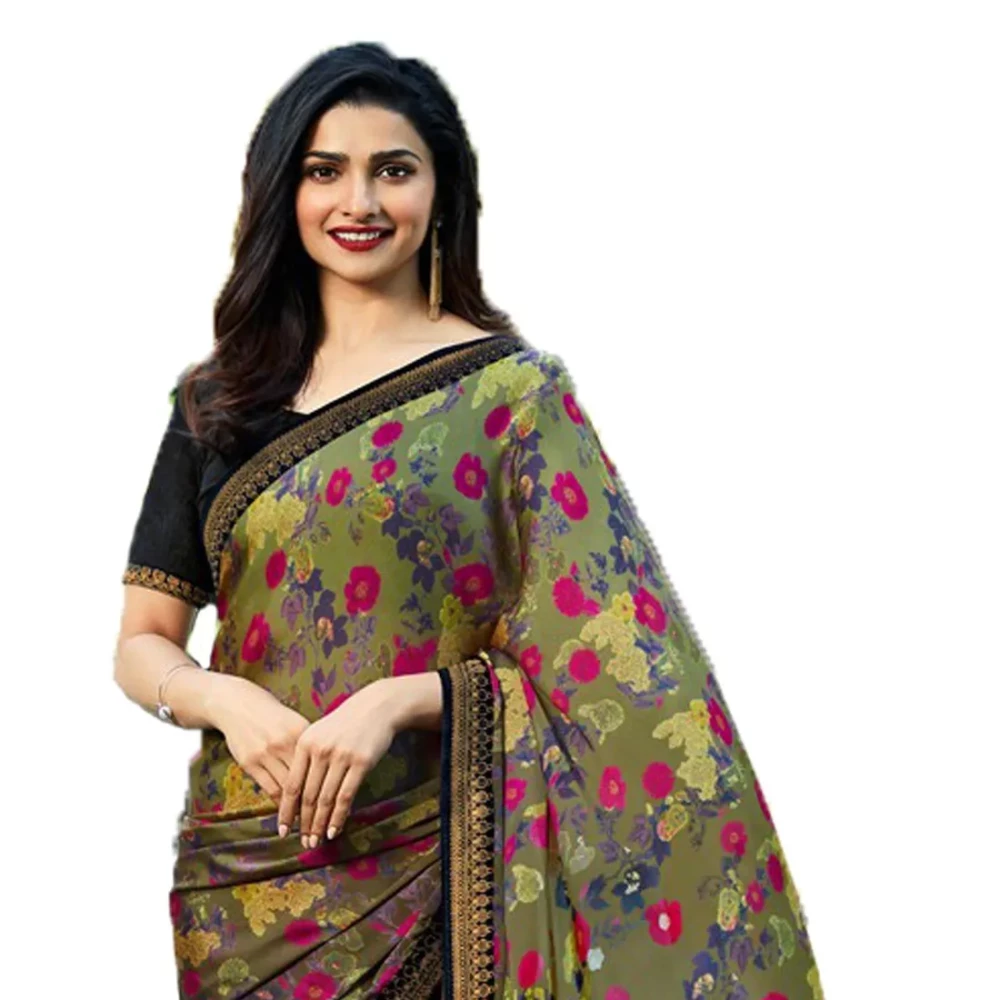 Whether you're attending a wedding, festival, or special event, our Women's Silk Georgette Printed Floral Green Saree with Jacquard Work Lace Border is sure to make a statement wherever you go. Embrace the beauty of Indian tradition with this exquisite saree and radiate elegance with every step you take.
