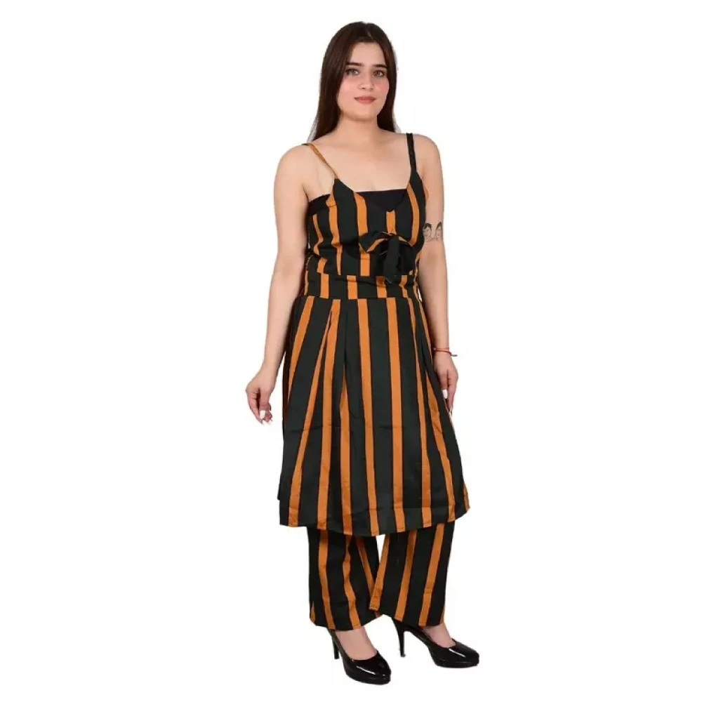 The Shoulder Straps on the top add a touch of modernity, making it a chic choice for various occasions. The set includes both a stylish top and matching bottom, offering a coordinated look that effortlessly transitions from day to night.