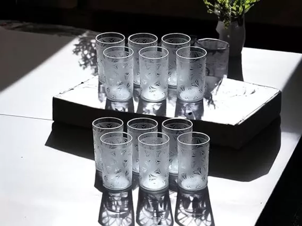 The 12 Pcs Plastic Diamond Design Unbreakable Stylish Transparent Water Glass/Juice Glass/Beer Plastic Glass Set is a collection of 12 plastic glasses designed with a diamond pattern. These glasses are made from a durable and unbreakable plastic material, making them suitable for various purposes and environments. The set includes 12 glasses, and they come in a transparent design, allowing you to see the contents inside. The glasses are multipurpose and can be used to serve water, juice, or beer, depending on your preference. The diamond design adds a touch of elegance and style to the glasses, making them suitable for both casual and formal occasions. Whether you're hosting a party, a family gathering, or just using them for everyday use, these glasses are designed to enhance the visual appeal of your beverages. Since the glasses are made from plastic, they offer the advantage of being lightweight and shatterproof. This makes them a safer and more practical option, especially in environments where using fragile glassware could be a concern, such as around children or in outdoor settings.