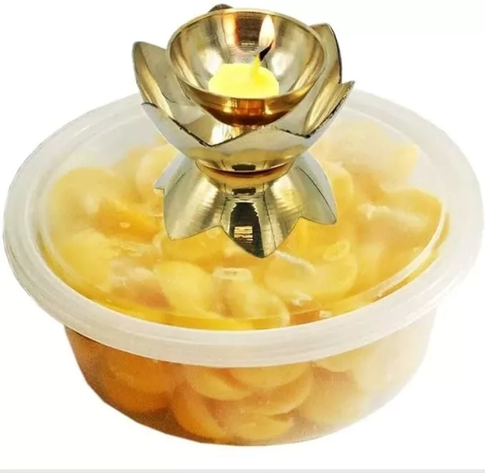 Unlike conventional wax or oil-based lamps, these diyas are made from pure ghee, symbolizing purity and auspiciousness. The process of handcrafting ensures attention to detail, resulting in exquisite diyas that radiate warmth and tranquility Ideal for poojas, aartis, festivals, and special occasions, our Ghee Diya Batti infuses the sacred ambiance with its radiant glow. Whether placed in temples, altars, or homes, these diyas evoke a sense of reverence and sanctity, inviting divine blessings and spiritual harmony The pure ghee used in crafting these diyas holds symbolic significance, representing the divine light that dispels darkness and ignorance.