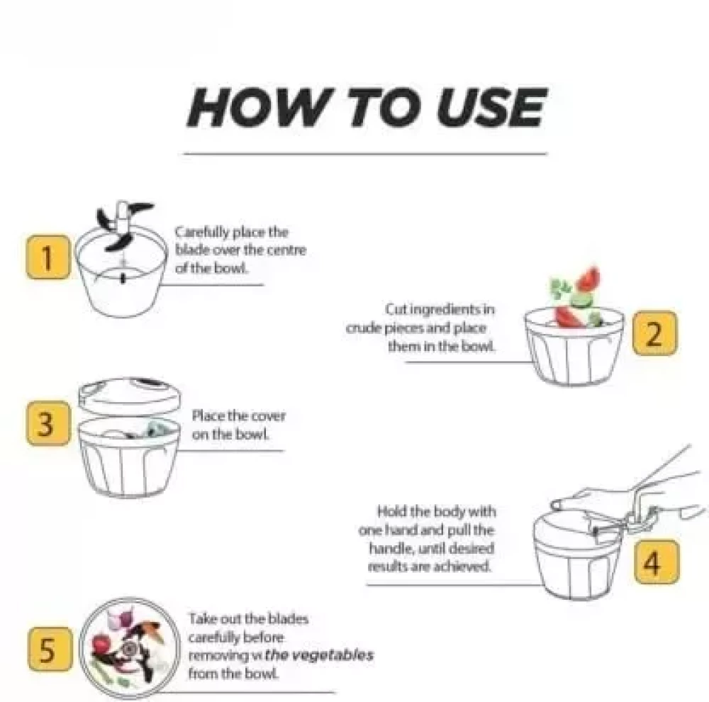 Uspech brings new edition of chopper to chop vegetables. Plastic handy chopper makes chopping of vegetables and fruits a seamless and easy process. Featuring manual operation and a smart design, you can chop a wide variety of items such as onions, tomatoes, nuts, cheese, apples and more. We brings to you a compact fruit and vegetable chopper equipped with 3 high-quality stainless steel blades and good capacity to ensure that your cooking session carries on without a hitch. The high-quality food grade plastic is durable as well. The easy pulley mechanism makes chopping more fun, ensuring minimum effort on your part.