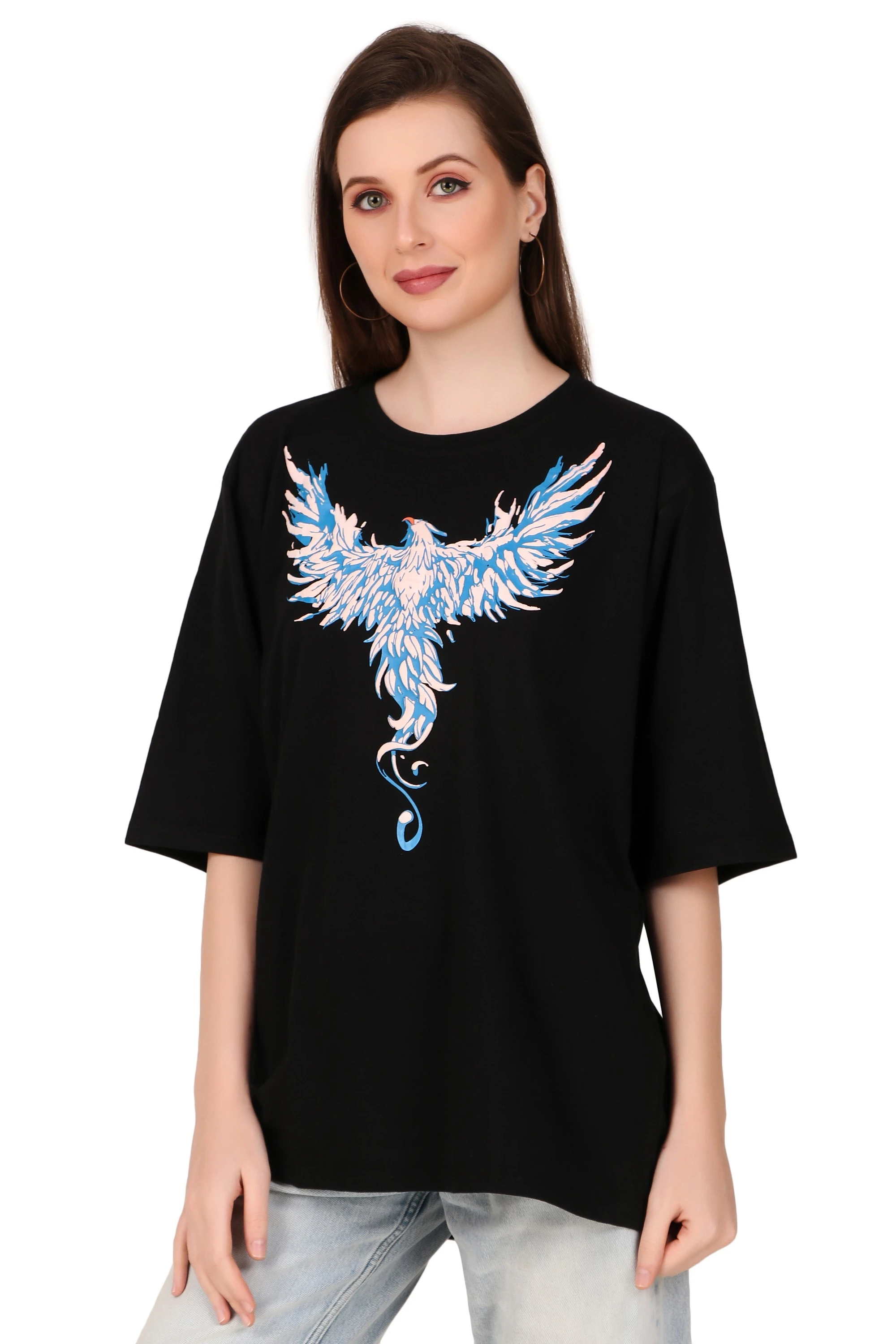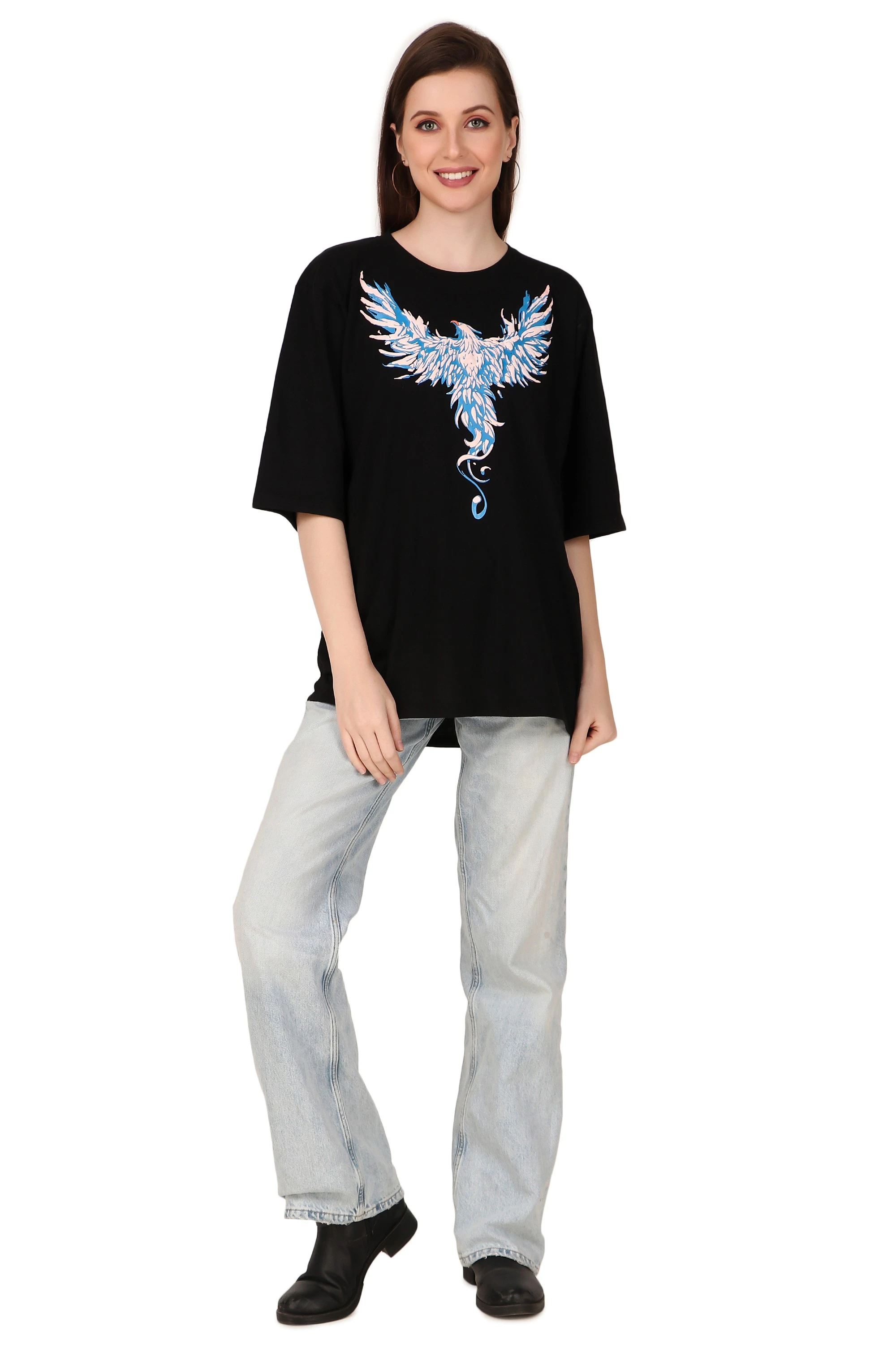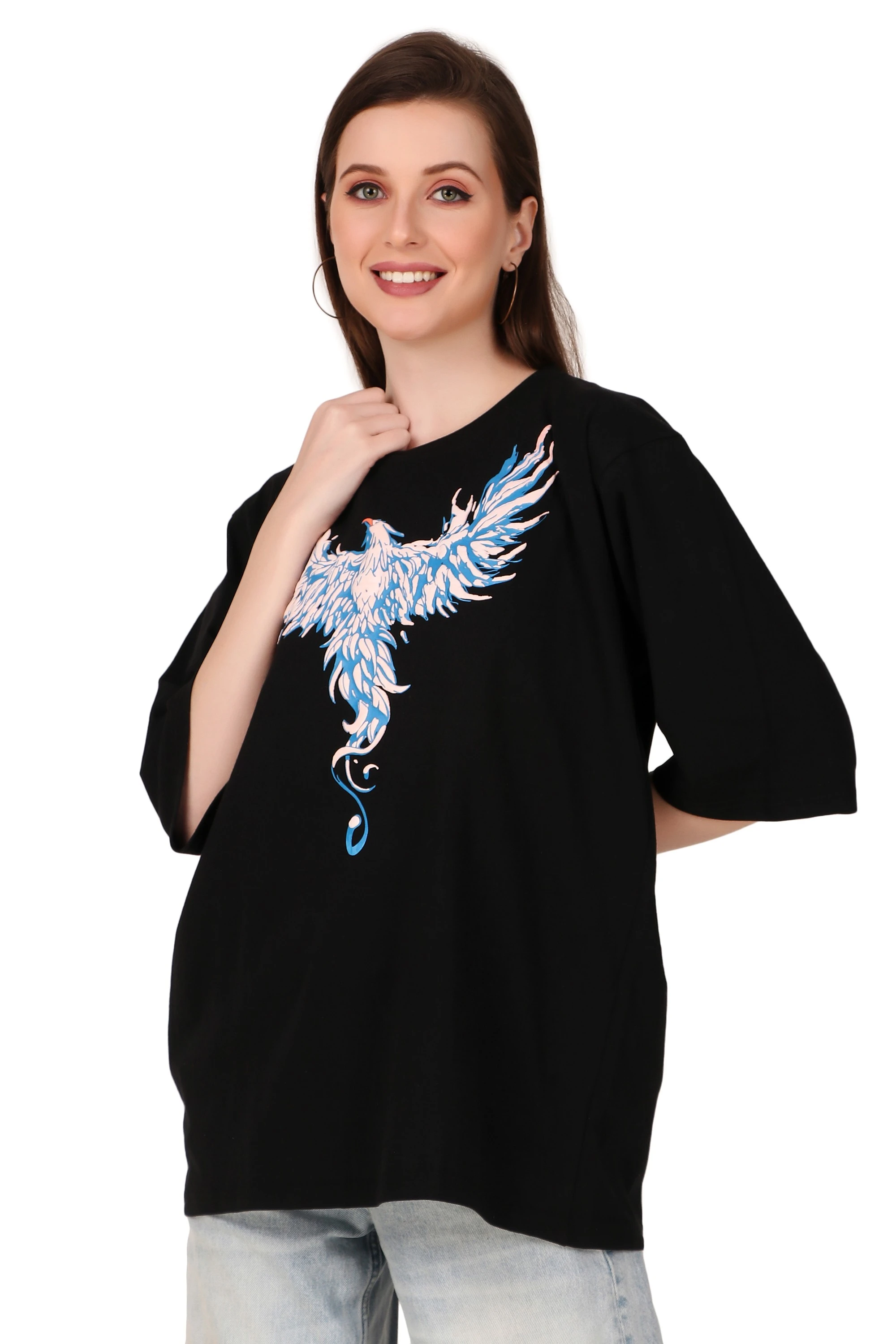 PUFF PRINTED OVERSIZED Bird T SHIRT FOR WOMEN Black