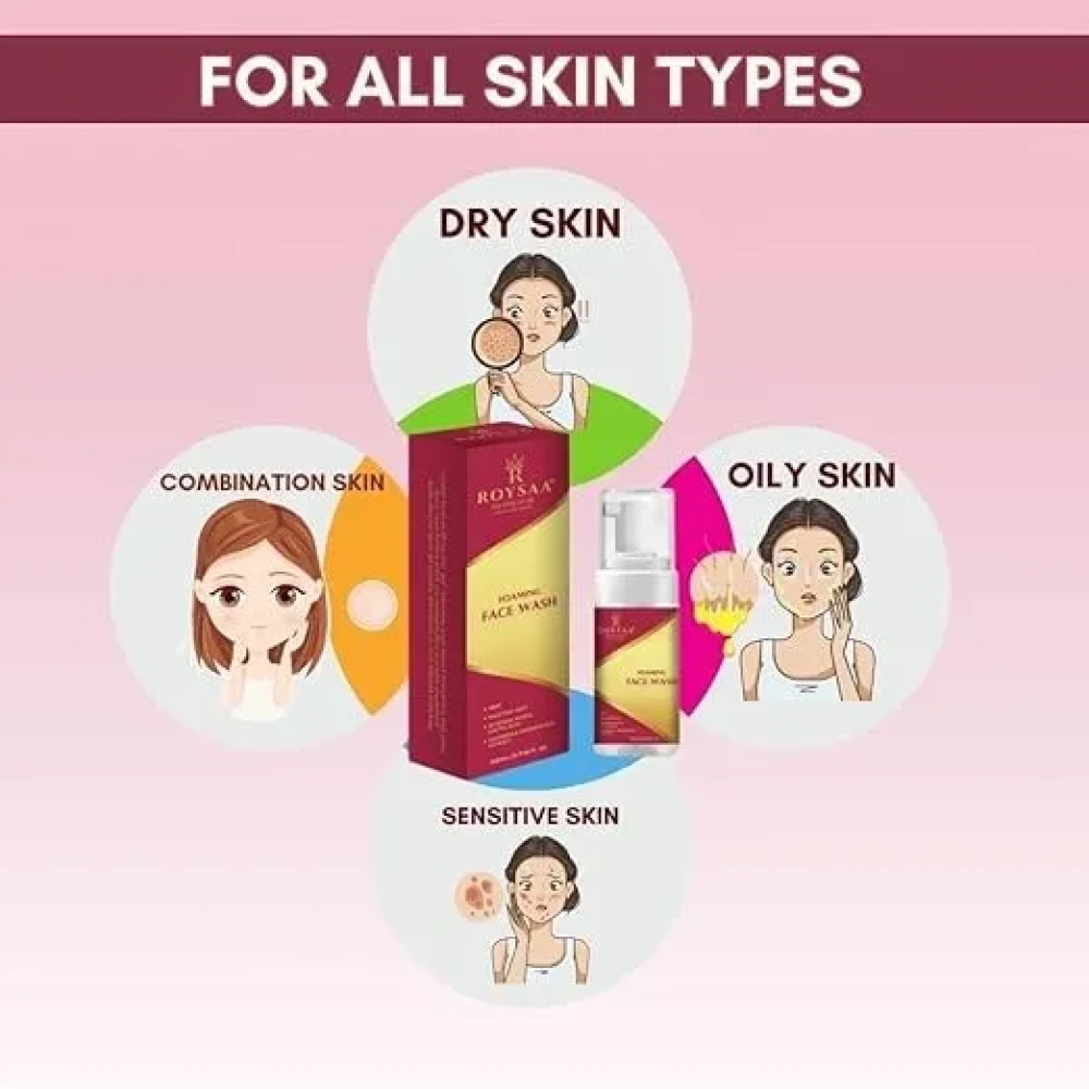 Introducing Roysaa Foaming Face Wash, your go-to solution for clear, refreshed skin. With a unique fusion of natural and active ingredients, this face wash is designed to effectively cleanseexfoliate, and rejuvenate your complexion.