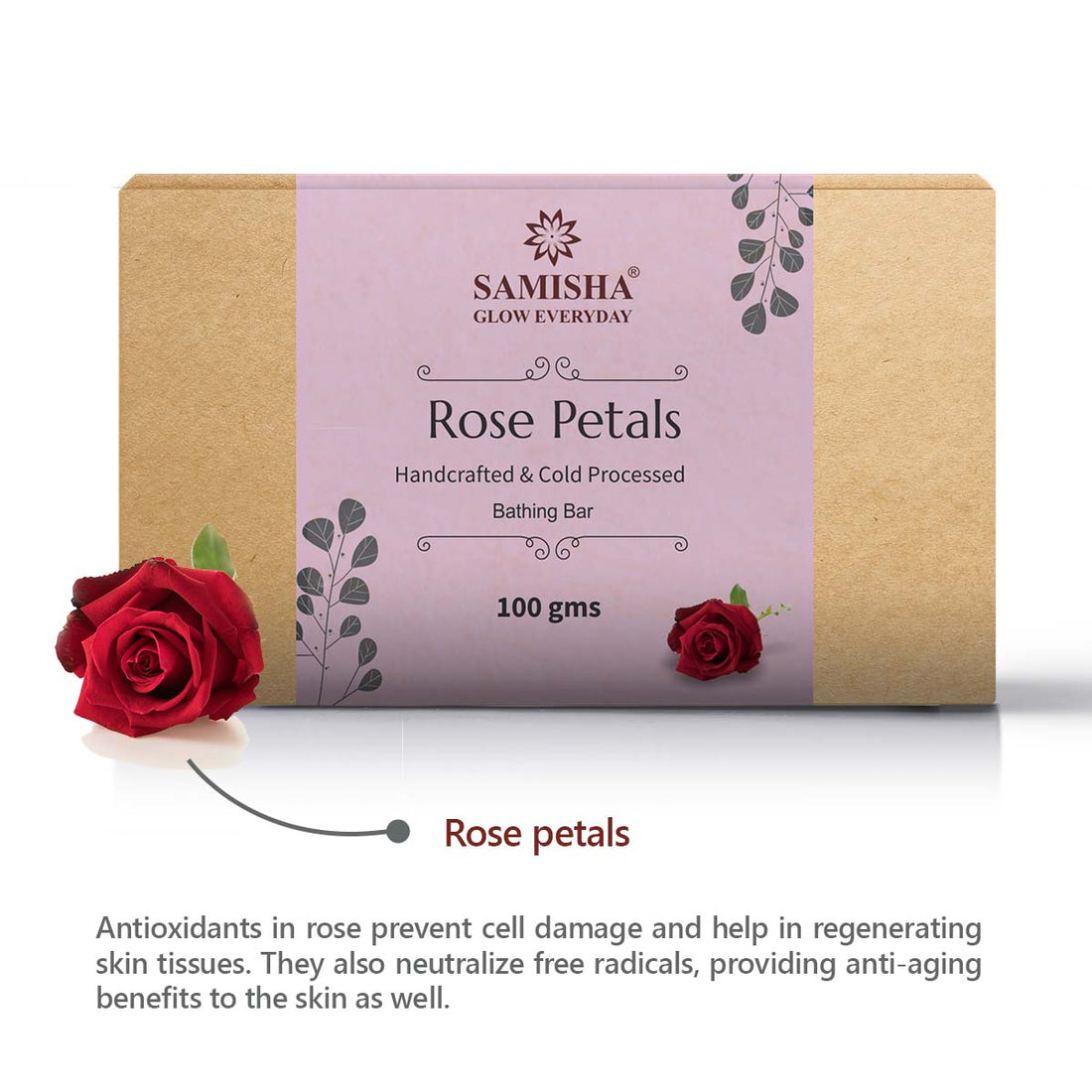 Hand-Crafted Natural Cold Pressed Soap Bar Refreshing & stimulating pure bathing experience Naturally Clean & Pure Skin Natural Ingredients to hydrate & rejuvenate skin Best of Nature formulated by Ayurveda Ingredients: Rose: prevent cell damage and help in regenerating skin tissues. They also neutralize free radicals, providing anti-aging benefits to the skin as well. How to use: Apply on wet face, body & massage in circular motion Lather well to remove dirt & grease Rinse thoroughly & pat dry the skin Benefits: 100% natural, chemical-free, and no hardening agents Deeply hydrates & very delicate on skin Impart mild antiseptic properties while keeping skin smooth and velvety Suits all skin types