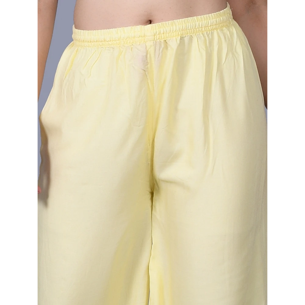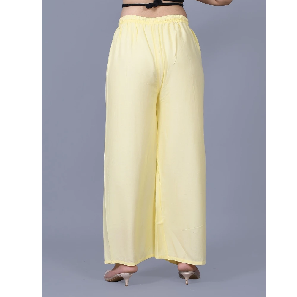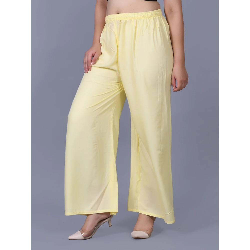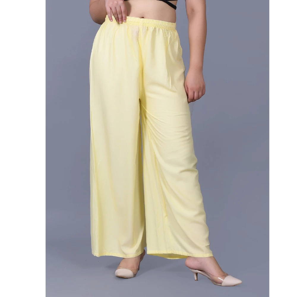 The mid-rise cut and solid pattern make these Palazzos an ideal choice, particularly well-suited for enhancing your ethnic wear collection. The sunny yellow color adds a touch of vibrancy, transforming your casual ensemble into a lively fashion statement. Crafted from premium Viscose Rayon fabric, these Palazzos offer a luxurious and comfortable feel against your skin.