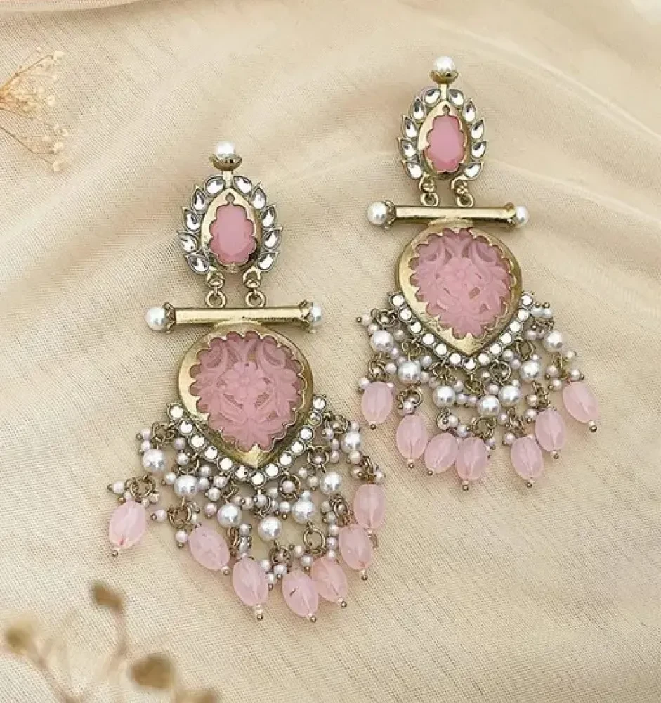 Introduce a touch of elegance to your jewelry collection with these Latest Chandelier Pink Earrings. Designed to make a statement, these earrings are perfect for adding a pop of color and sophistication to any outfit.