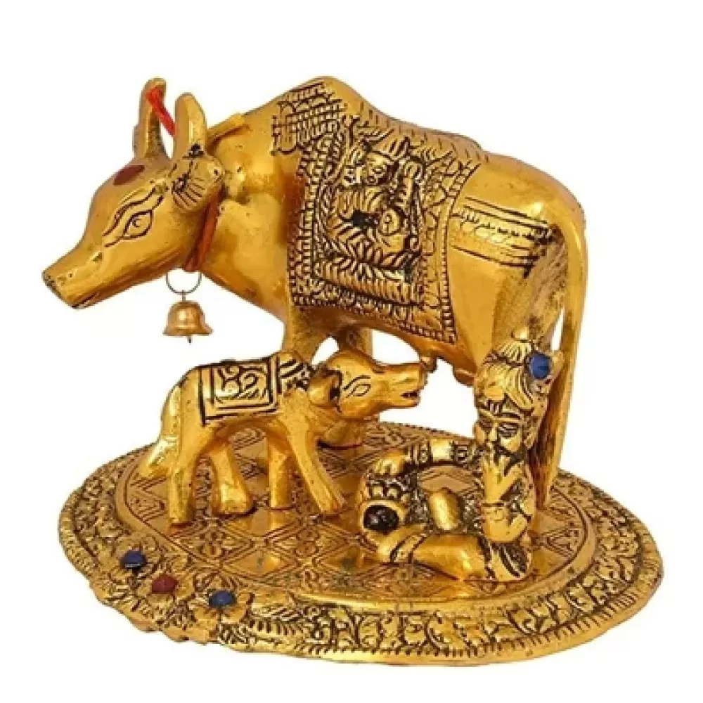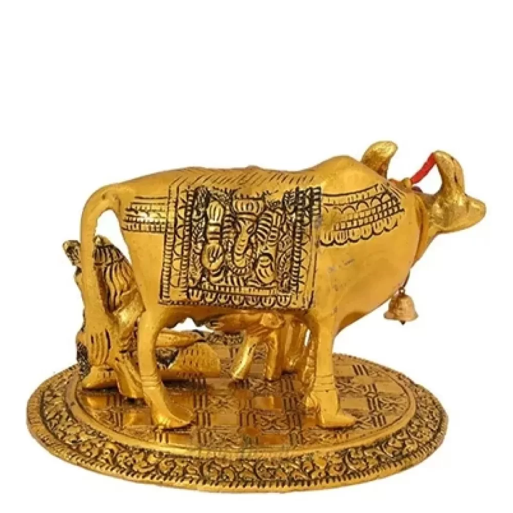Kamdhenu cow is the mother of divine qualities and on earth it is equivalent of Goddess. Kamdhenu cow idol along with its calf is the symbol of prosperity and Vatsalya (love that a mother feels for a child). It can be placed in the room of children and guests In Hindu religion cow has attained the status of holy mother worthy of worship. Kamdhenu is a miraculous \"cow of plenty\" who provides her owner whatever he desires and is often portrayed as the mother of other cattle as well as the eleven Rudras. The religious belief behind it says that it originated from Samudra Manthan.