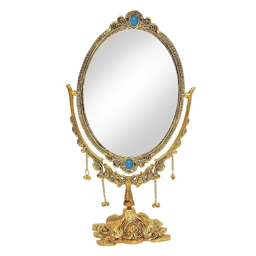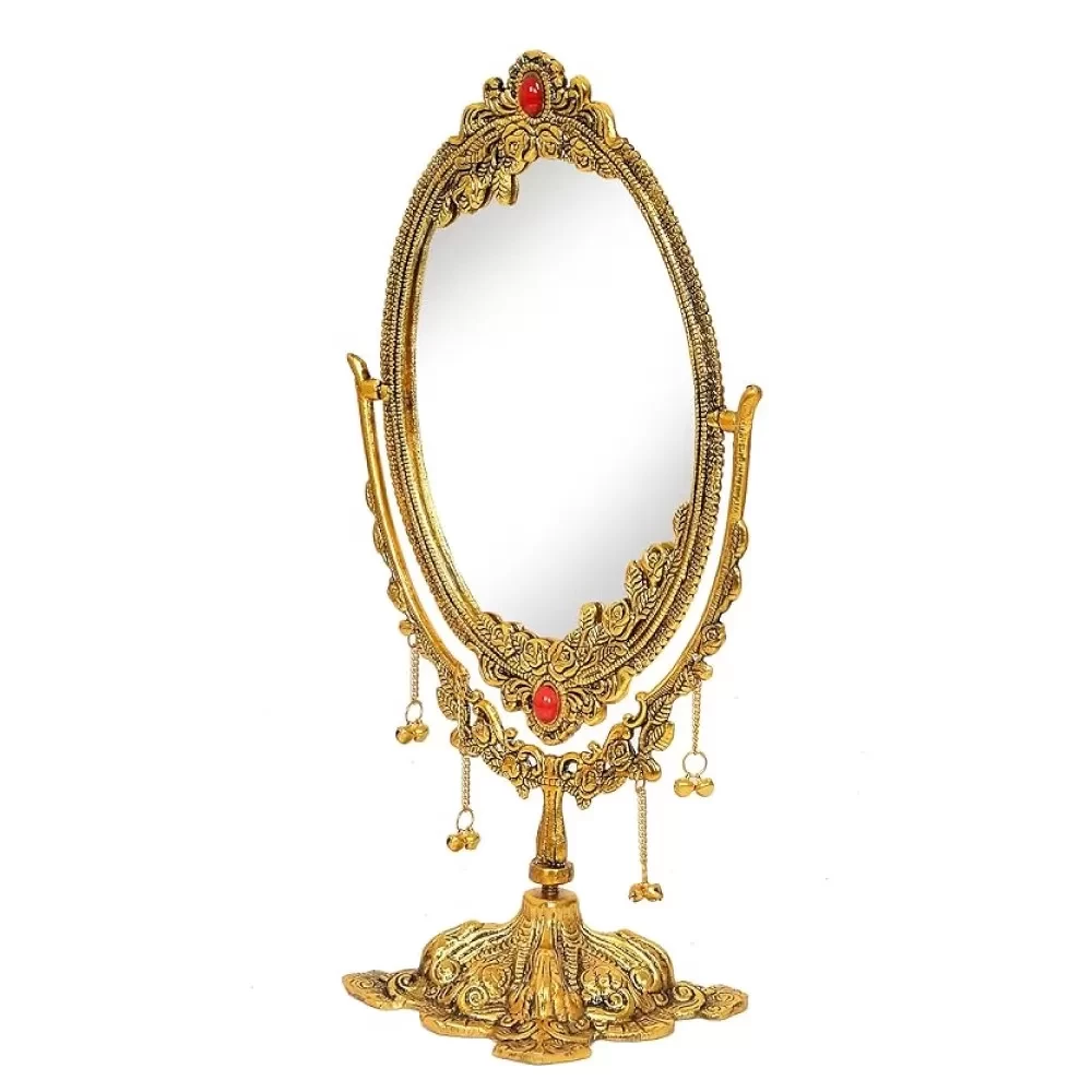 Brass frame mirror with anitque and elegant look golden plated finish for home use.It is this purpose that is very likely the reason why many people are so interested in buying the antique mirror to take home. The value of art cannot be fooled. This can give a new impression to a room that initially looks ordinary,