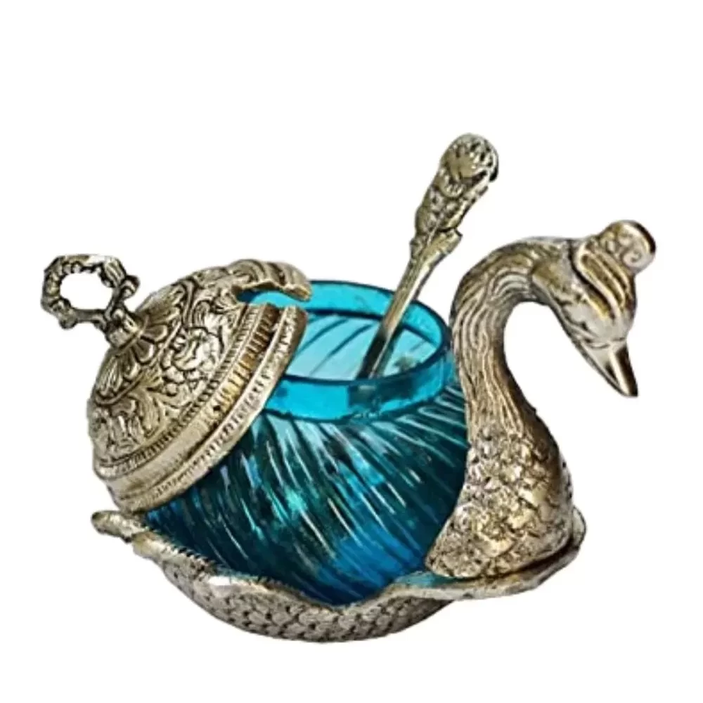 Add this unique bowl set to your serving bowl collection by buying this Handicrafts metal Single bowl with spoons. The product comes in the shape of a duck and has two bowls with spoons and lids.