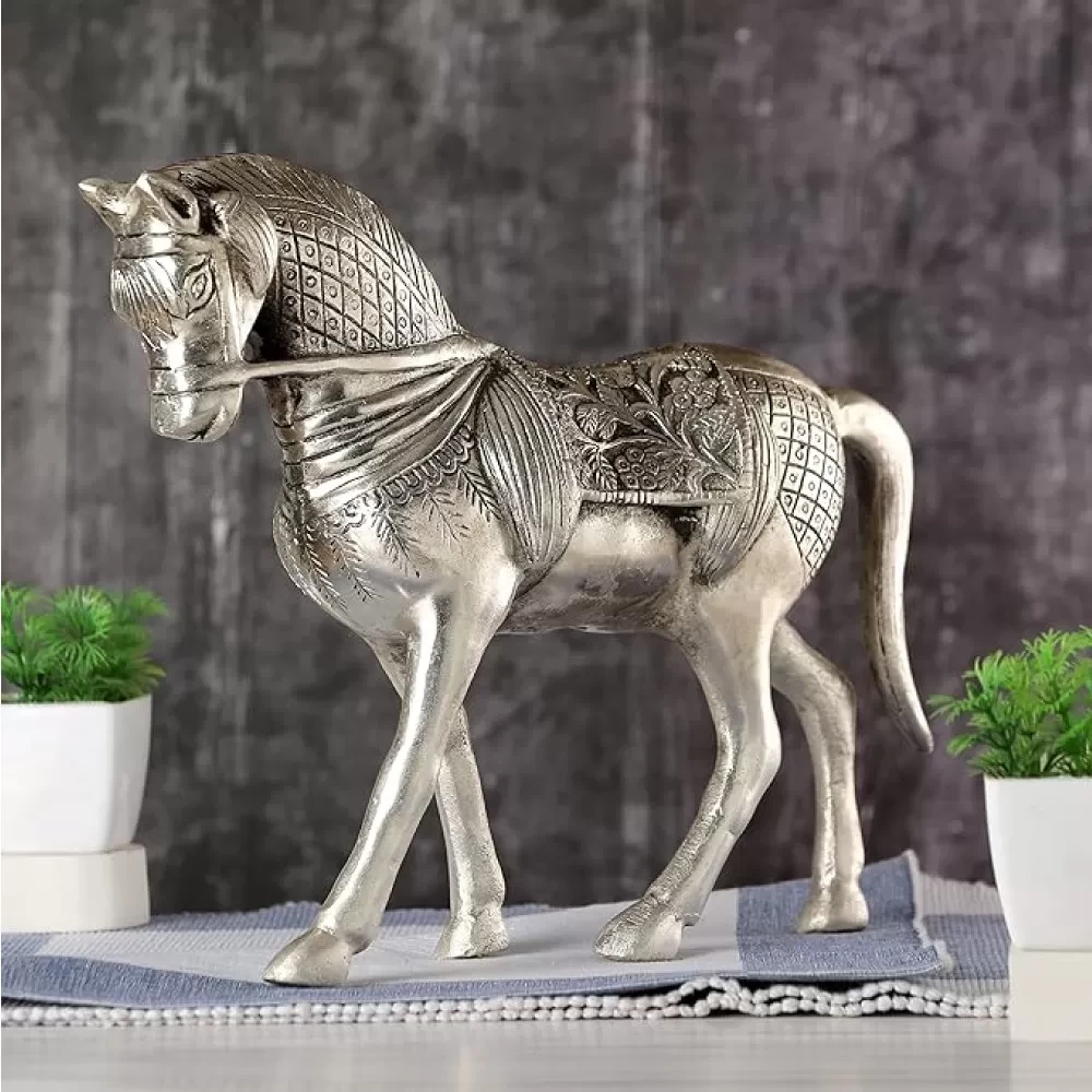 Crafted from fine quality of aluminum this horse showpiece reflects the artistic brilliance and adds elegance to your home study room office. This representation of the almighty will bring tranquility to your home.
