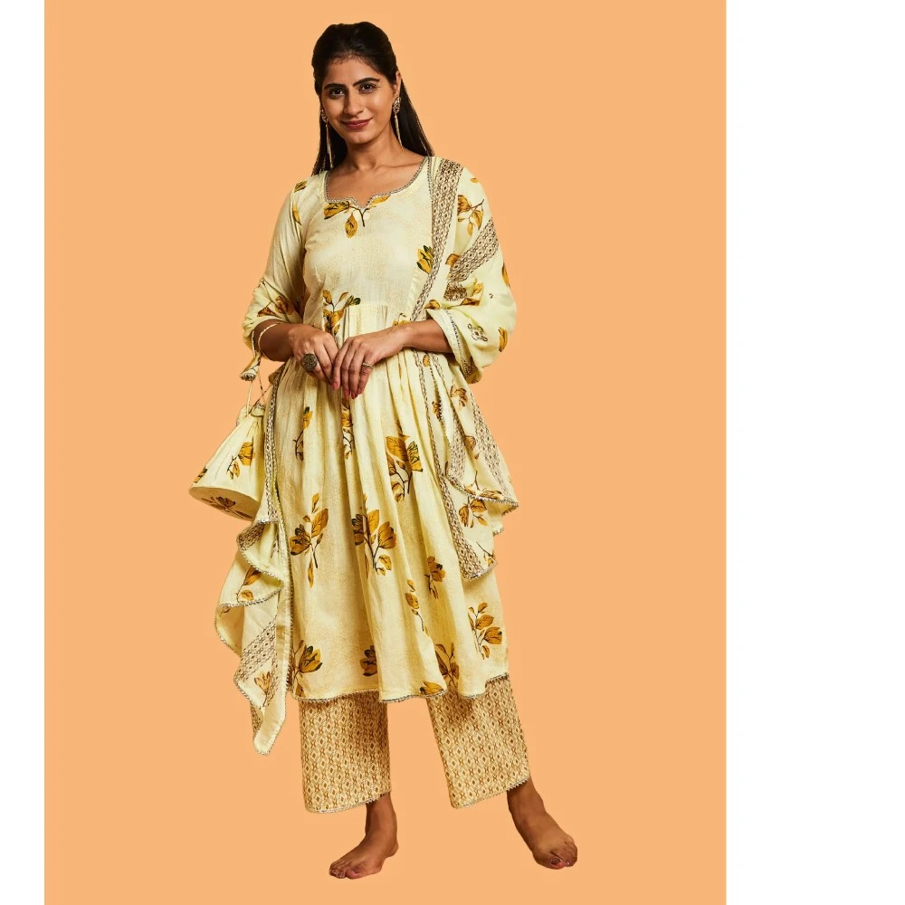 Design: The straight-fit Kutras and Afghani Salwar showcase traditional charm with a modern twist. The timeless design makes this suit set suitable for various occasions, providing you with the flexibility to dress up or down as needed.