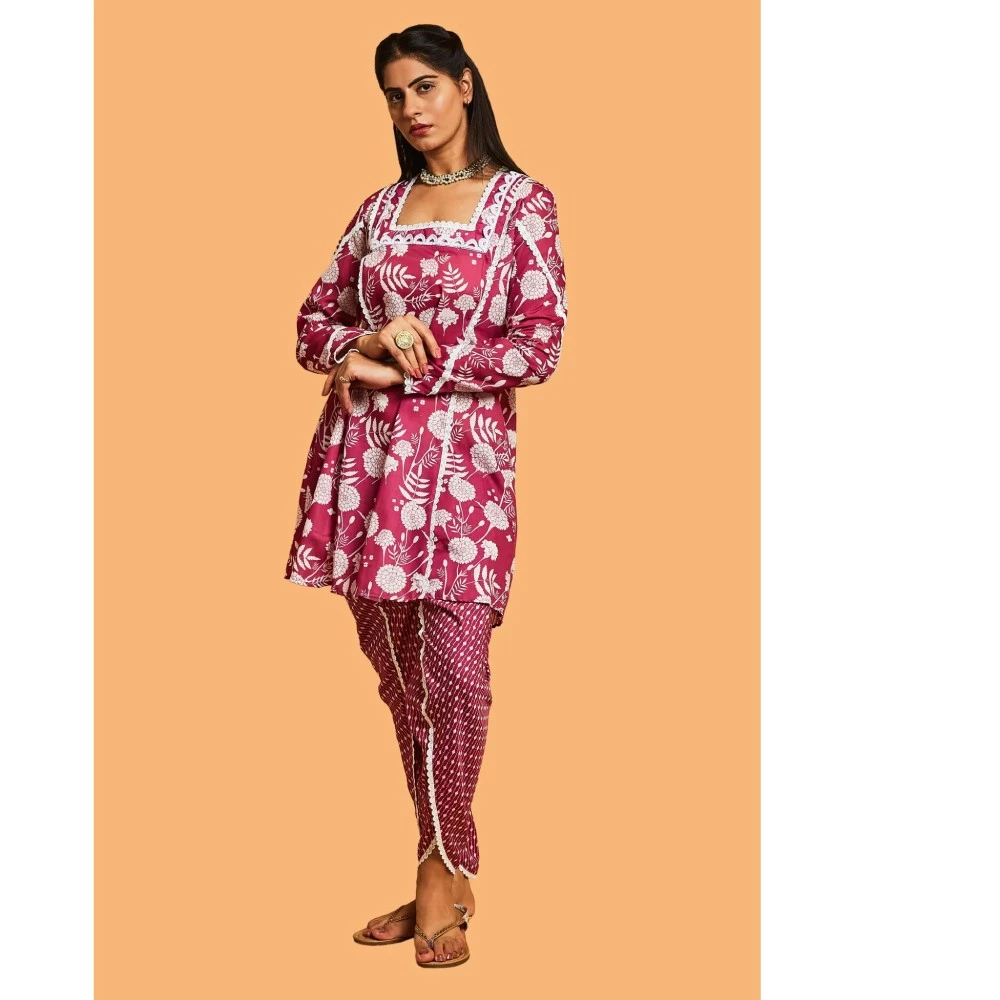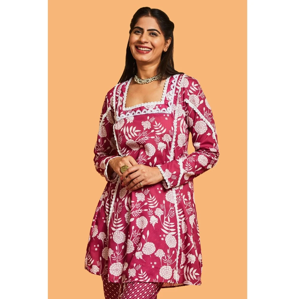 Introducing our gorgeous Flower Dream Pink Anarkali Set, a captivating ensemble adorned with a beautiful pink and white flower motif that radiates feminine charm and elegance. The top's loose, flowy form is designed to accommodate any figure, ensuring both comfort and style. Paired with the matching Dhoti, this Pink and White Floral Anarkali set is the ideal pick for any occasion, whether you're attending a summer festival or any other event.