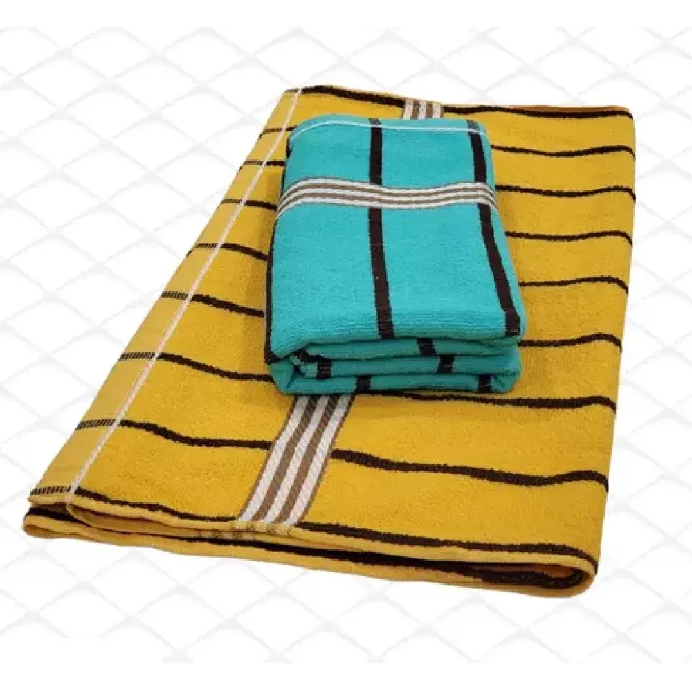 Introducing the Rajnandani Teal and Yellow Towels, a set that brings a burst of color and energy to your daily bathing experience. These unisex towels are crafted from high-quality polyester, featuring a striking striped pattern that is sure to stand out in any bathroom.