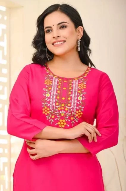 Elevate your casual wear collection with our Rani Pink Straight Kurta, tailored for those who appreciate the perfect balance of comfort and style. Make a lasting impression with this embroidered masterpiece, showcasing your refined sense of fashion at every casual occasion.
