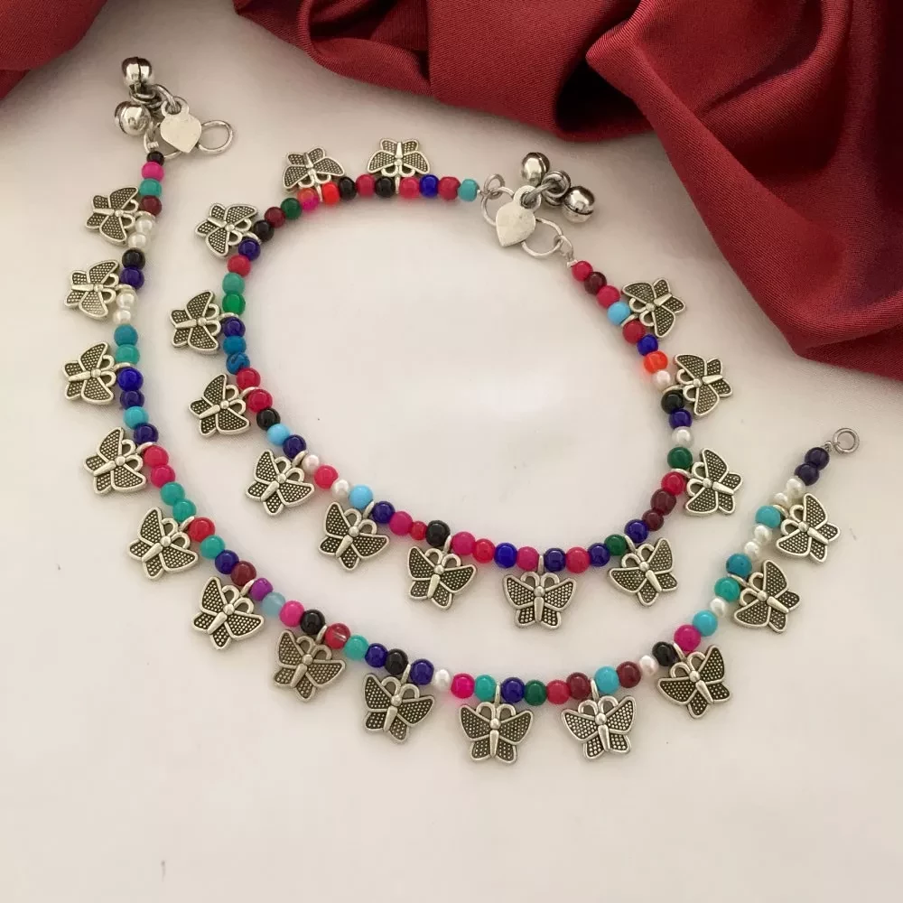 Add a touch of whimsy and elegance to your steps with these Butterfly Model Oxidised Premium Payal Anklets, and let your style take flight. Whether you're attending a festive gathering or simply accentuating your everyday look, these anklets will be a conversation starter.