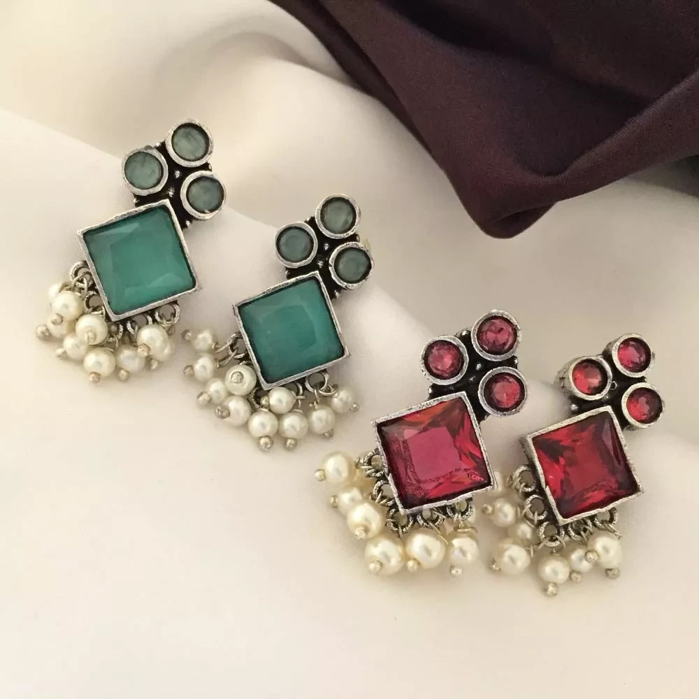 Combo of 2 Handmade Oxidsed Earrings with Blue and Red Pearl