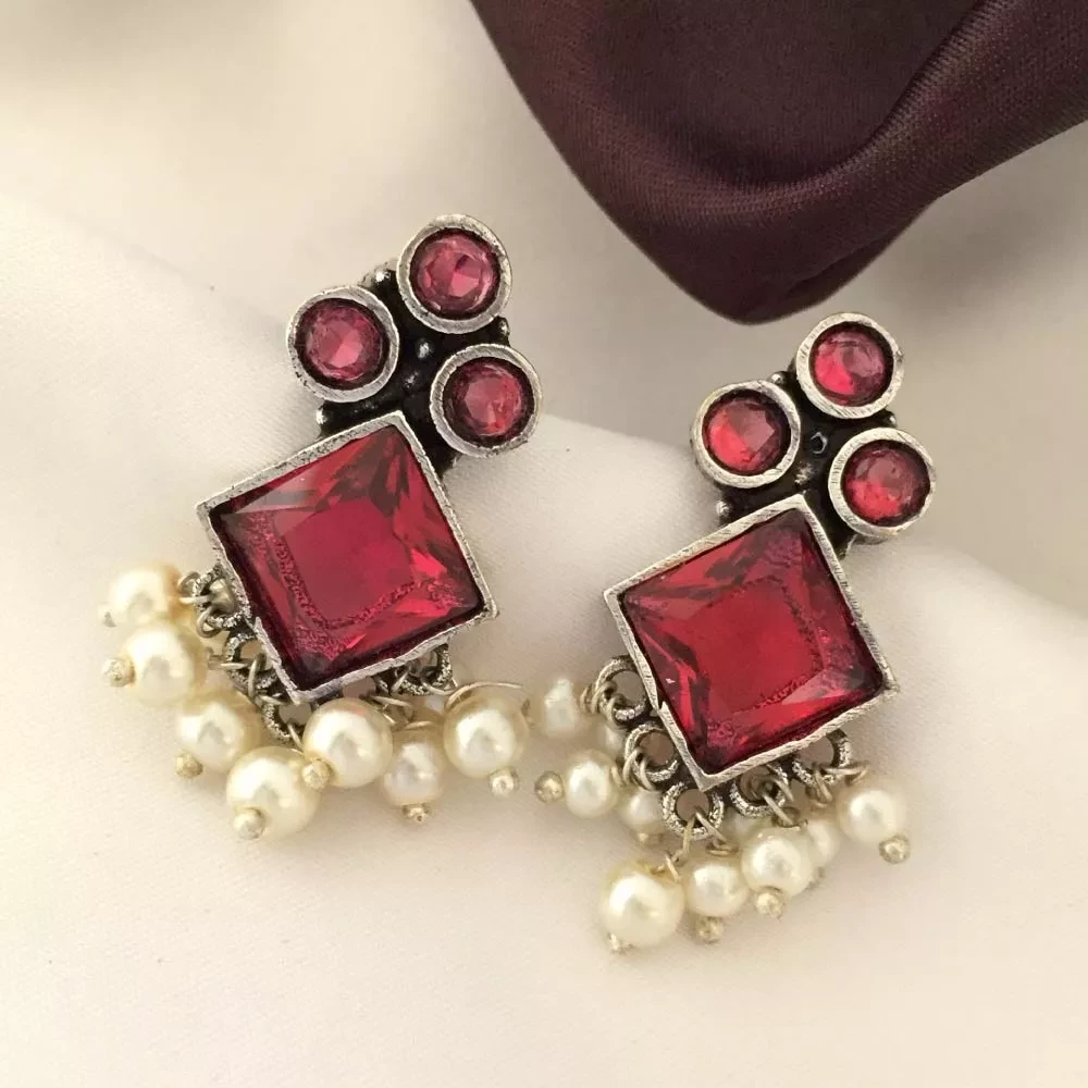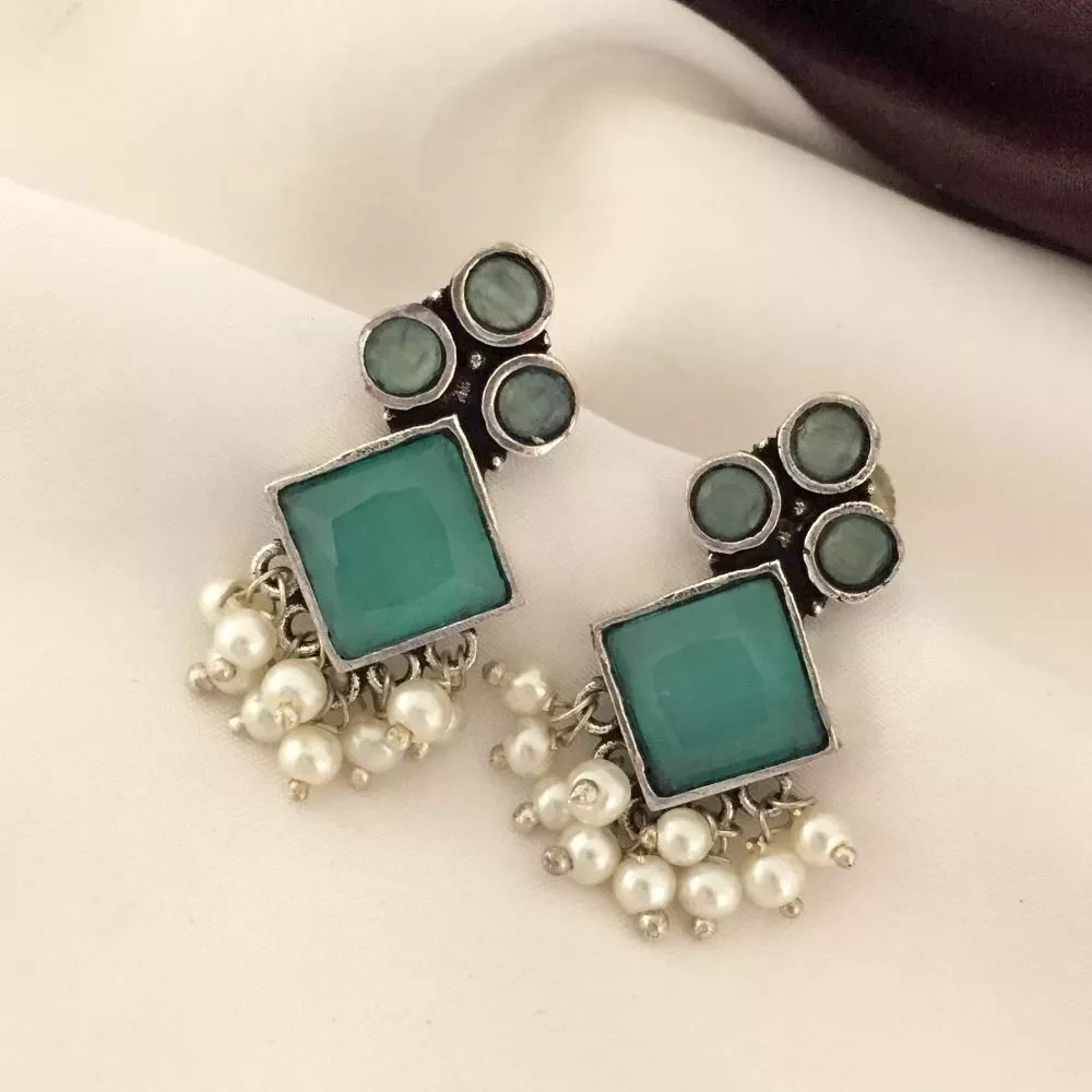 Material: The earrings are meticulously handcrafted from oxidised metal, giving them a unique antique look that is both stylish and durable. The addition of pearls brings a touch of sophistication and luster to the design.