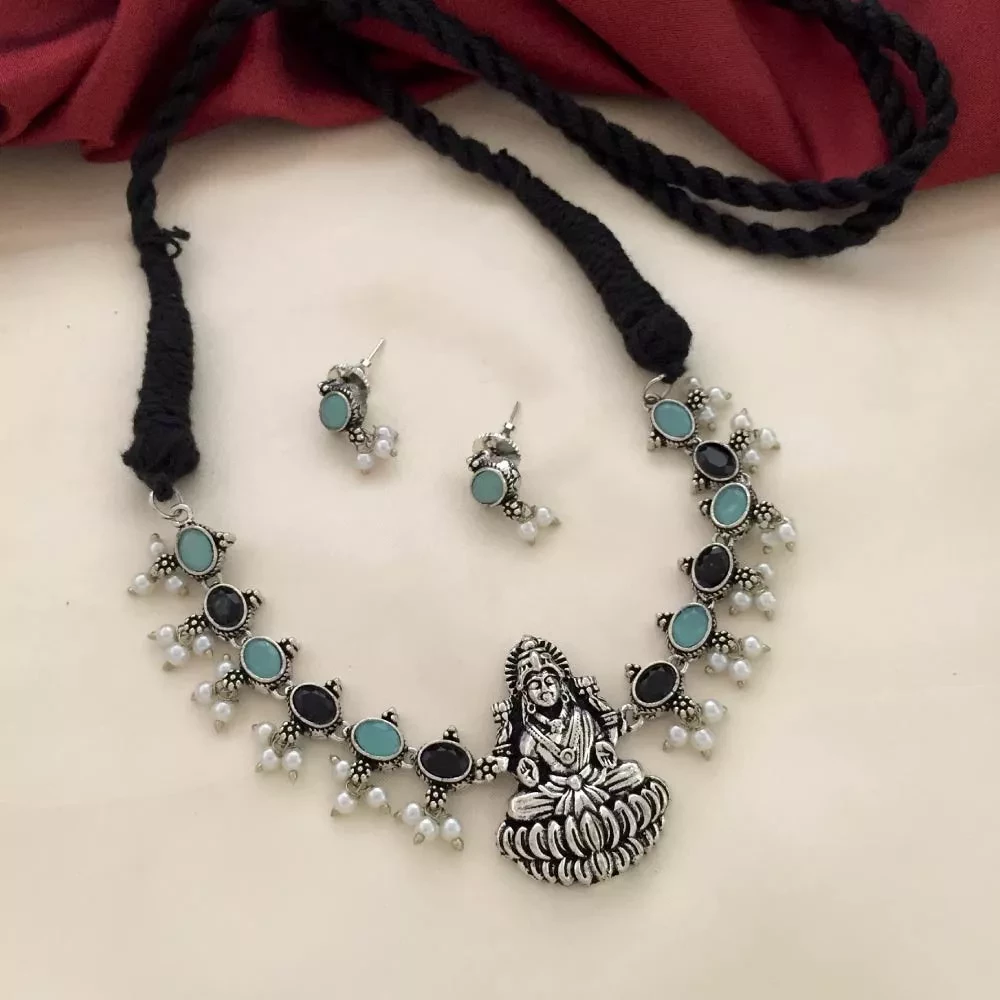 Embrace Prosperity with the Lakshmi Blue Black Necklace Set