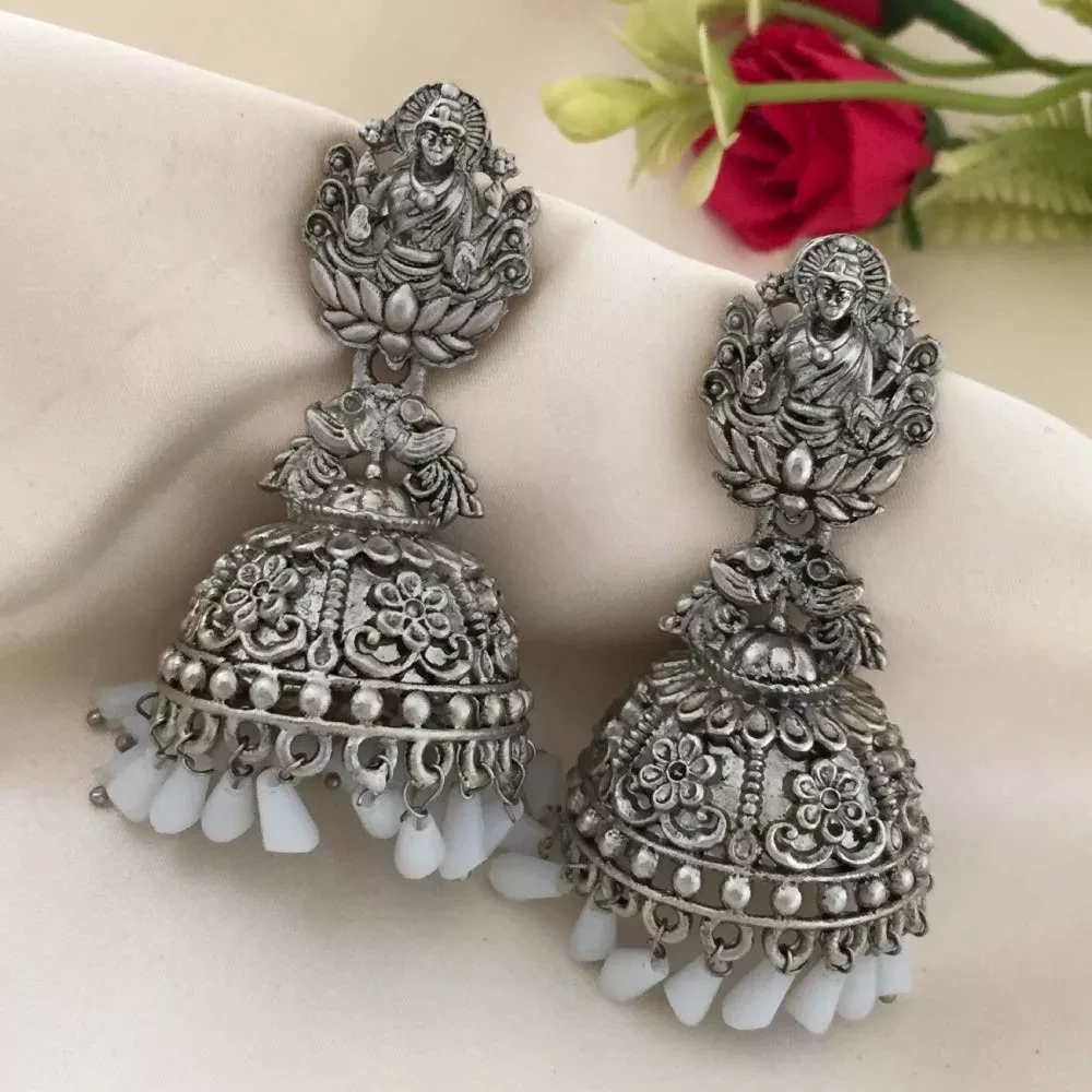 Premium Antique Silver Lakshmi Jhumka