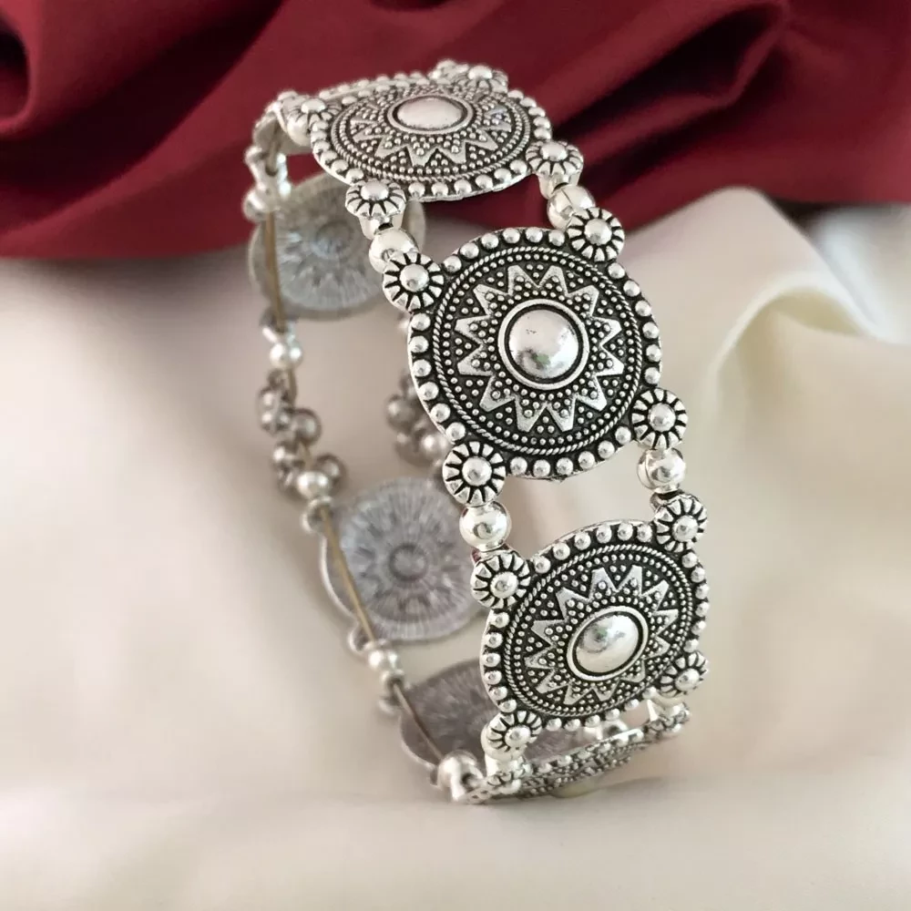 Design: The bracelet showcases intricate patterns and motifs reminiscent of antique jewelry. Its adjustable design ensures a comfortable fit for all wrist sizes, making it as practical as it is beautiful.