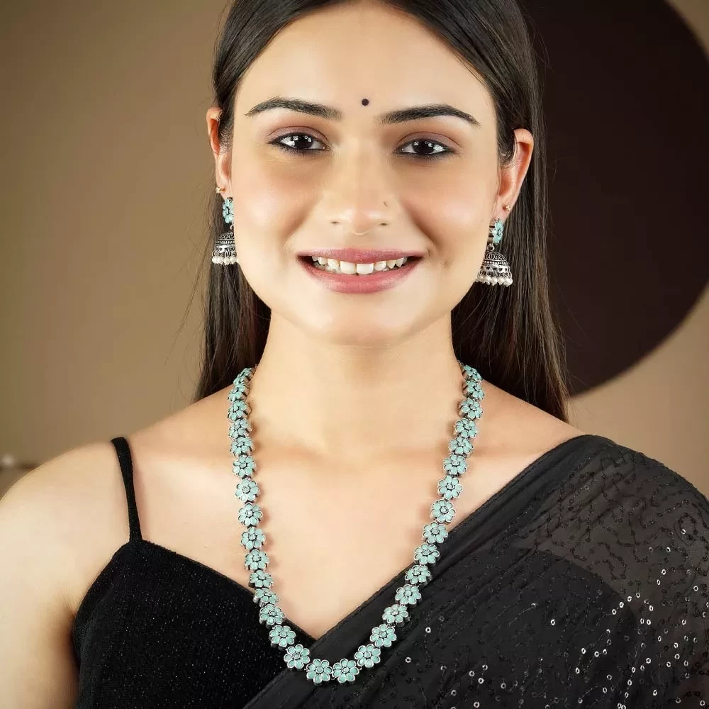 Silver Plated Flower Design Turquoise Blue Haram