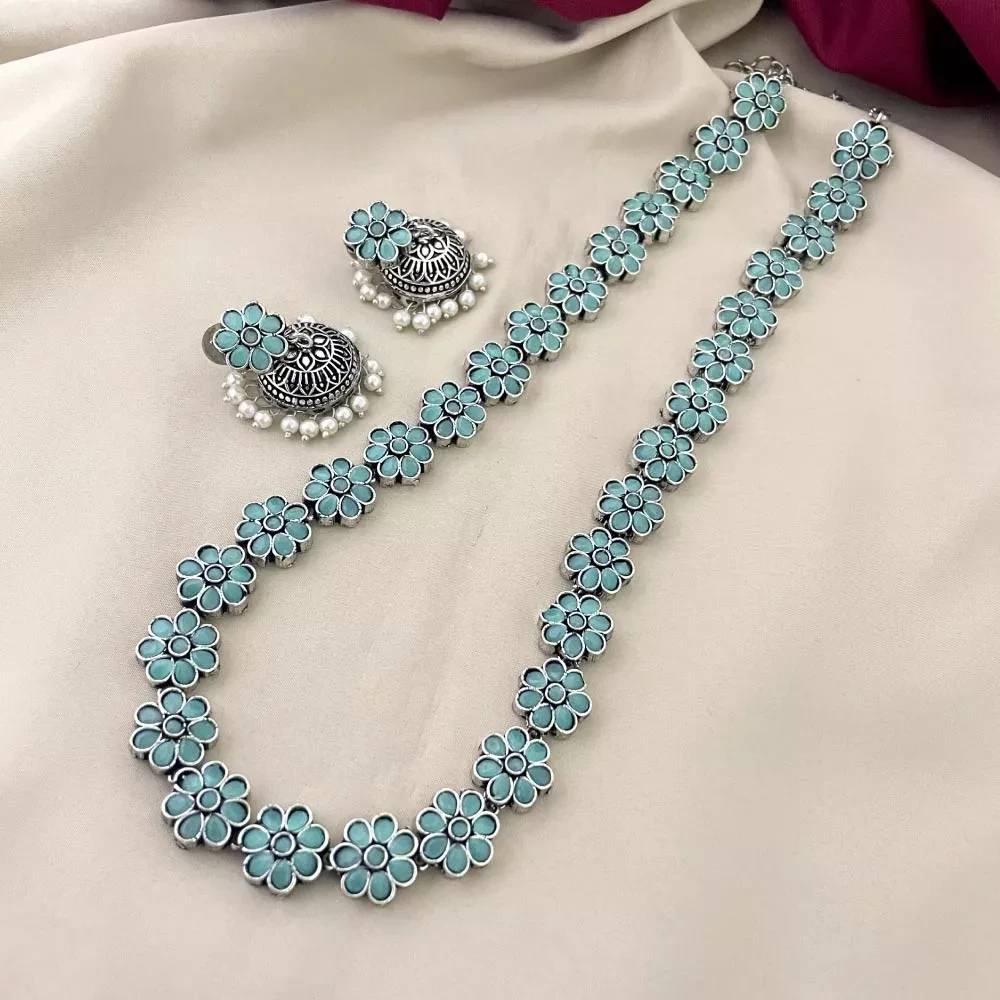 Tag: sets imitation jewellery women women jewellery imitation blue flower haram silver