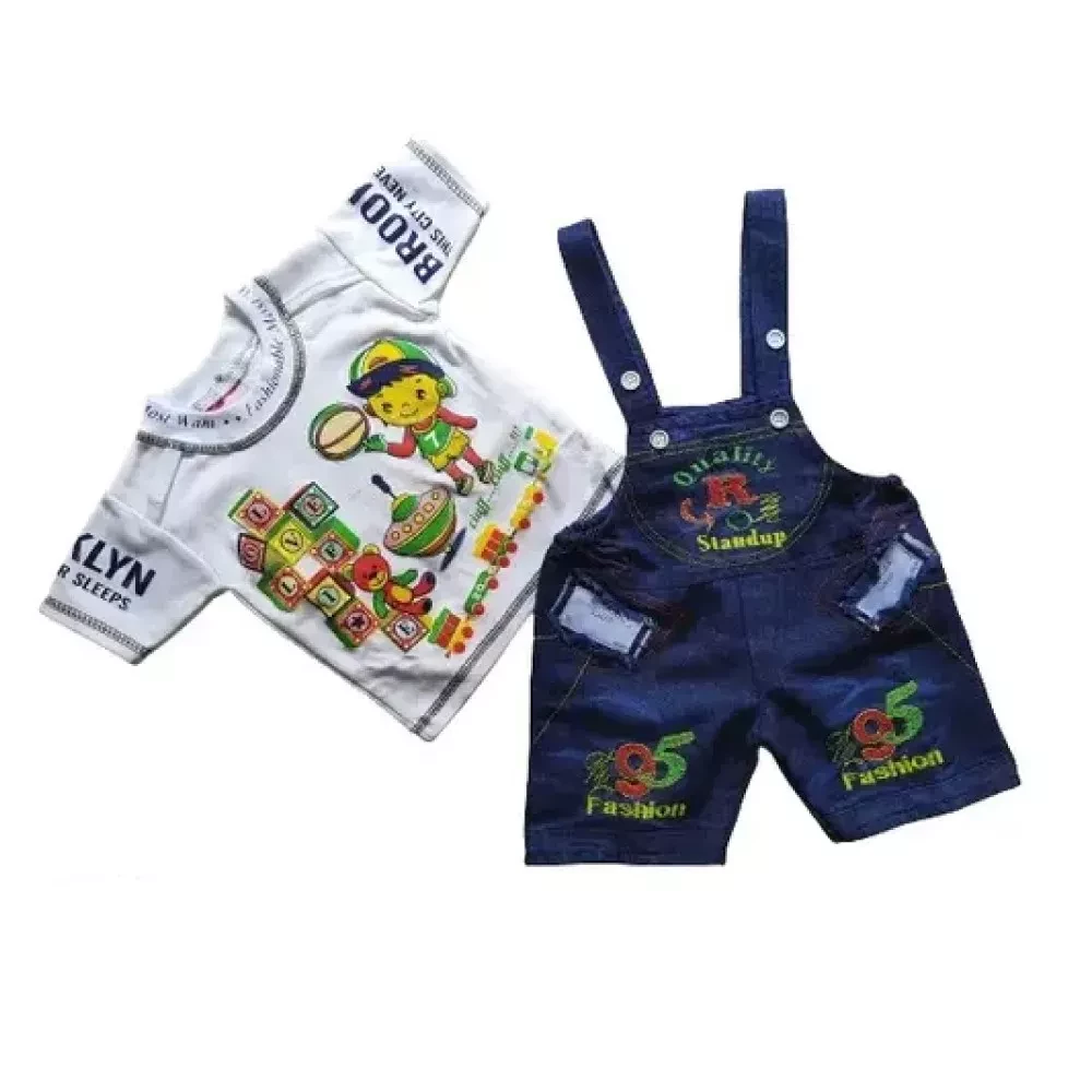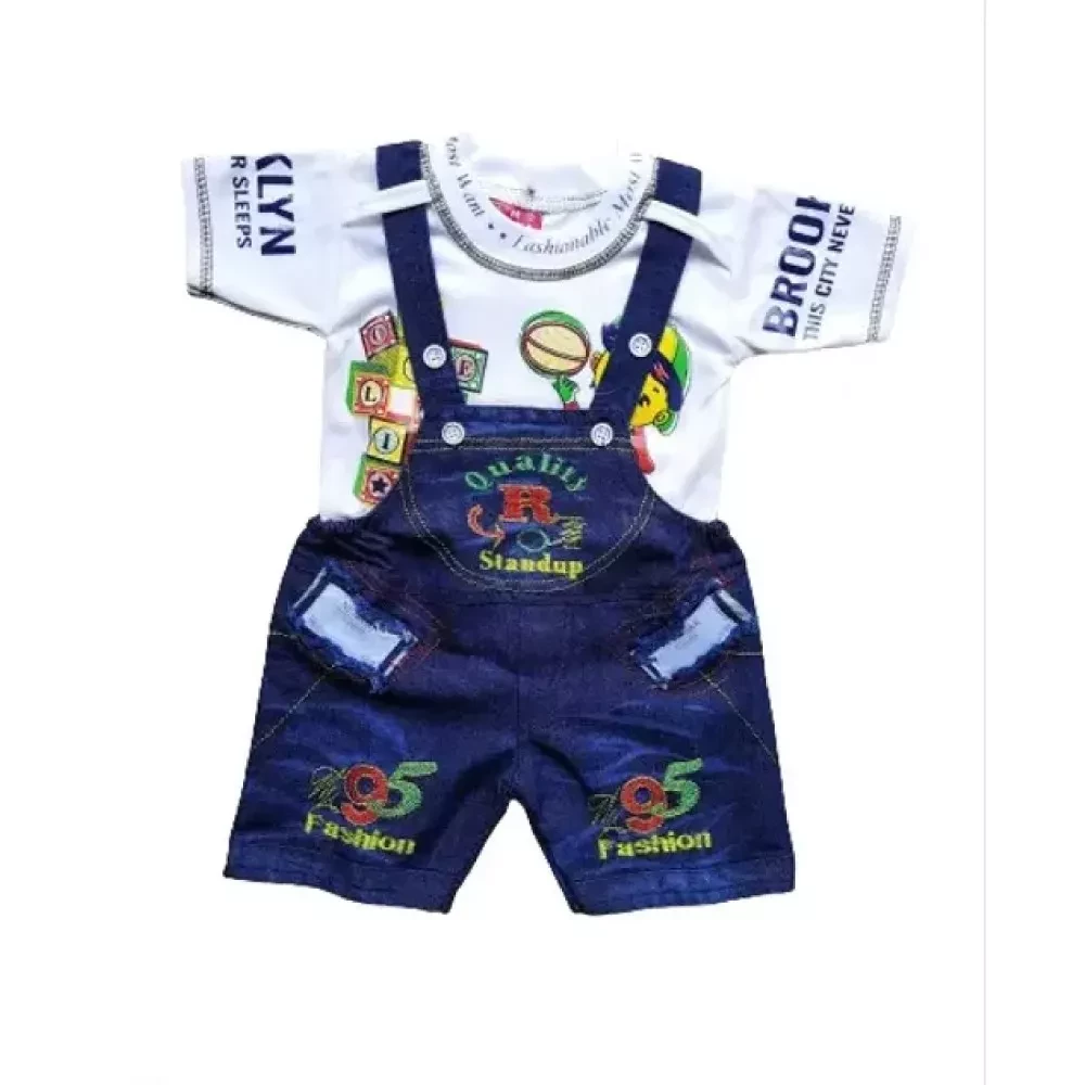Bottom Fabric: The dungaree is crafted from high-quality denim, known for its durability and classic appeal. The denim is soft yet sturdy, ready to withstand the rigors of active play.