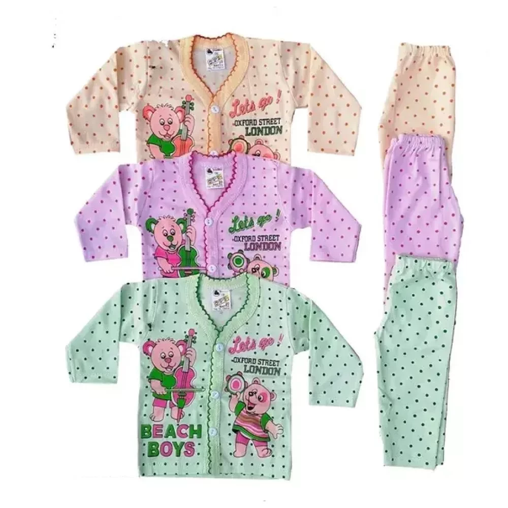 Bottom Pattern: To add a dash of fun, the bottoms boast a playful printed pattern. The cheerful designs are sure to delight both you and your baby, adding a touch of whimsy to their wardrobe.