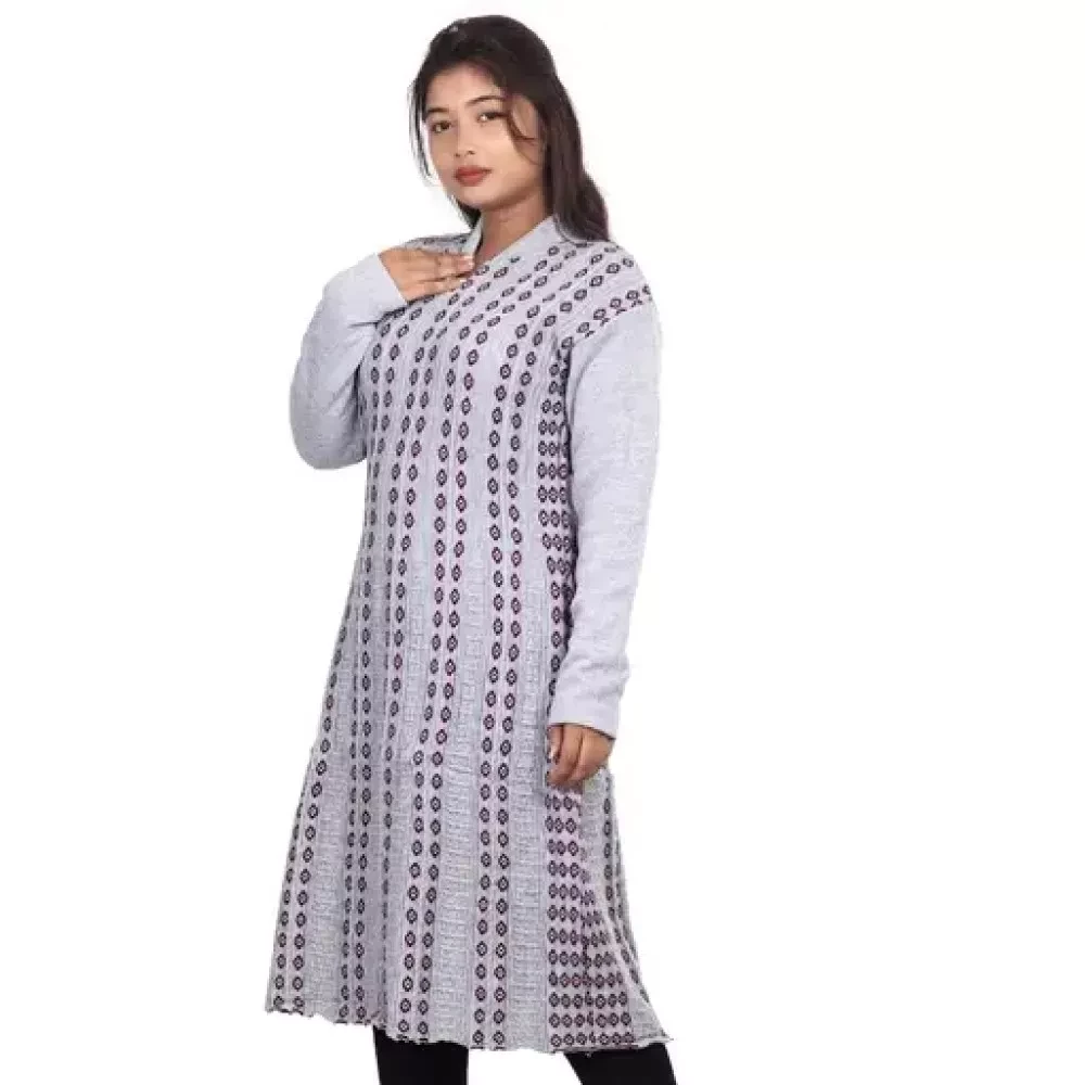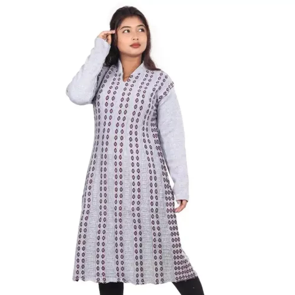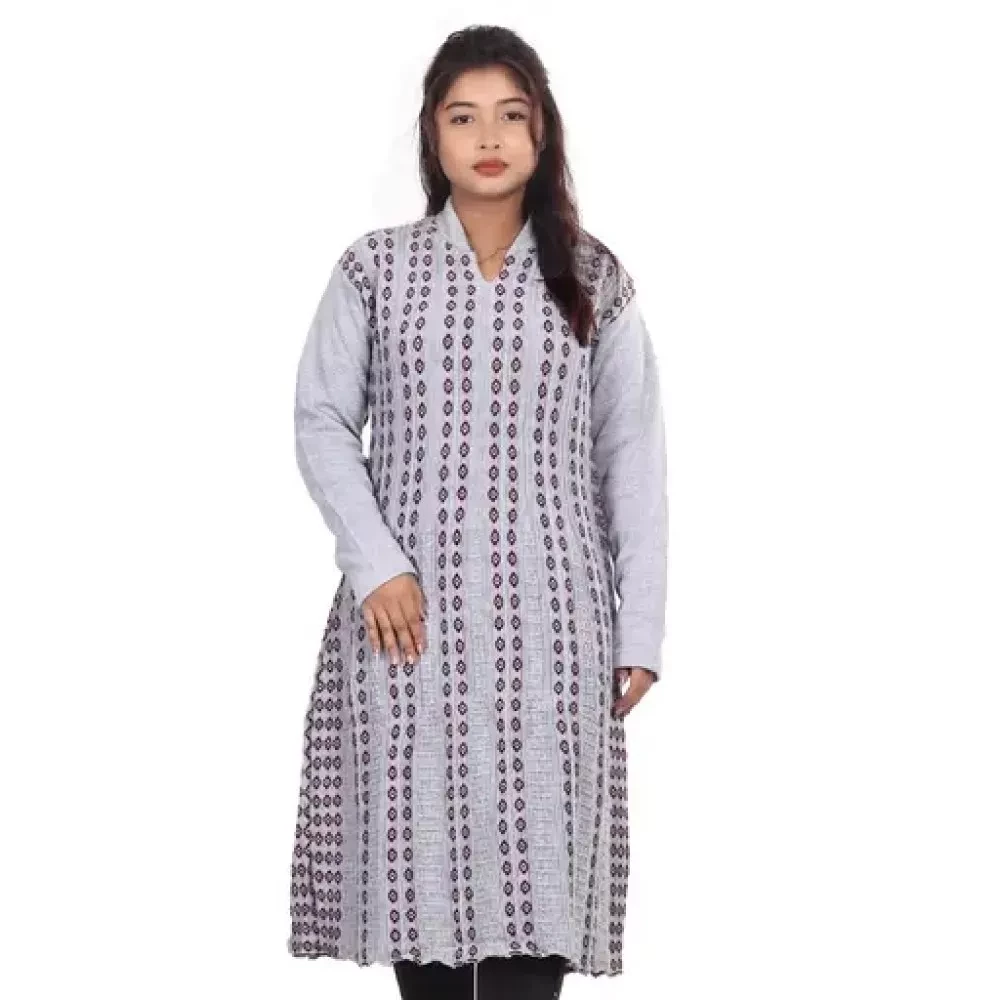 Step into the winter season with grace and poise in our Women's Winter Wear Grey Kurti. This woolen kurti is a fusion of traditional charm and modern comfort, making it an ideal choice for the contemporary woman.