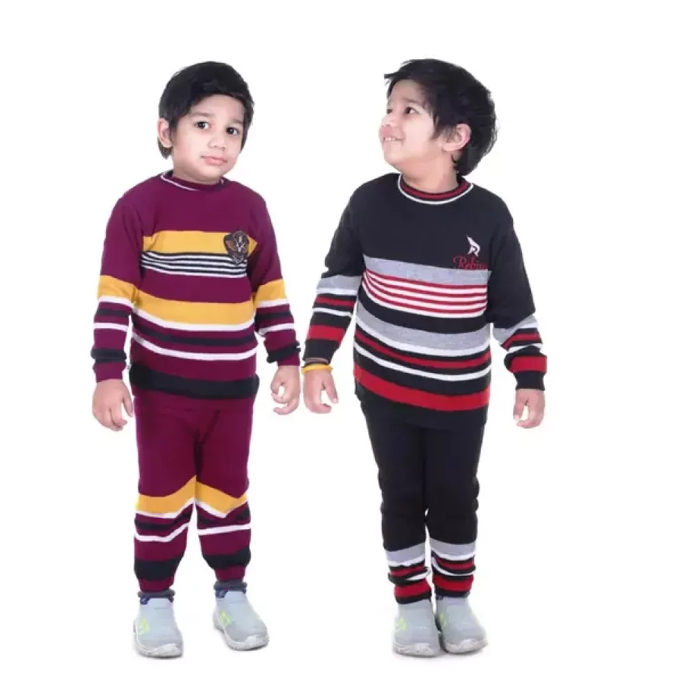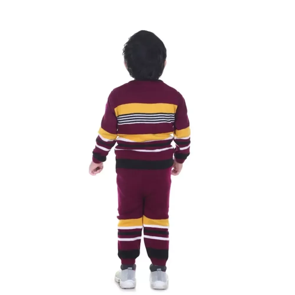 Embrace the winter season with style and warmth with our Twin Pack of Woolen Sweaters for both boys and girls. These sweaters come in sophisticated maroon and classic black, each featuring a stylish striped pattern.