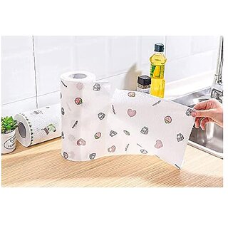 Qolixs Non Woven Reusable and Washable Kitchen Printed Tissue Roll Non-stick Oil Absorbing Paper Roll Kitchen Special Paper Towel Wipe