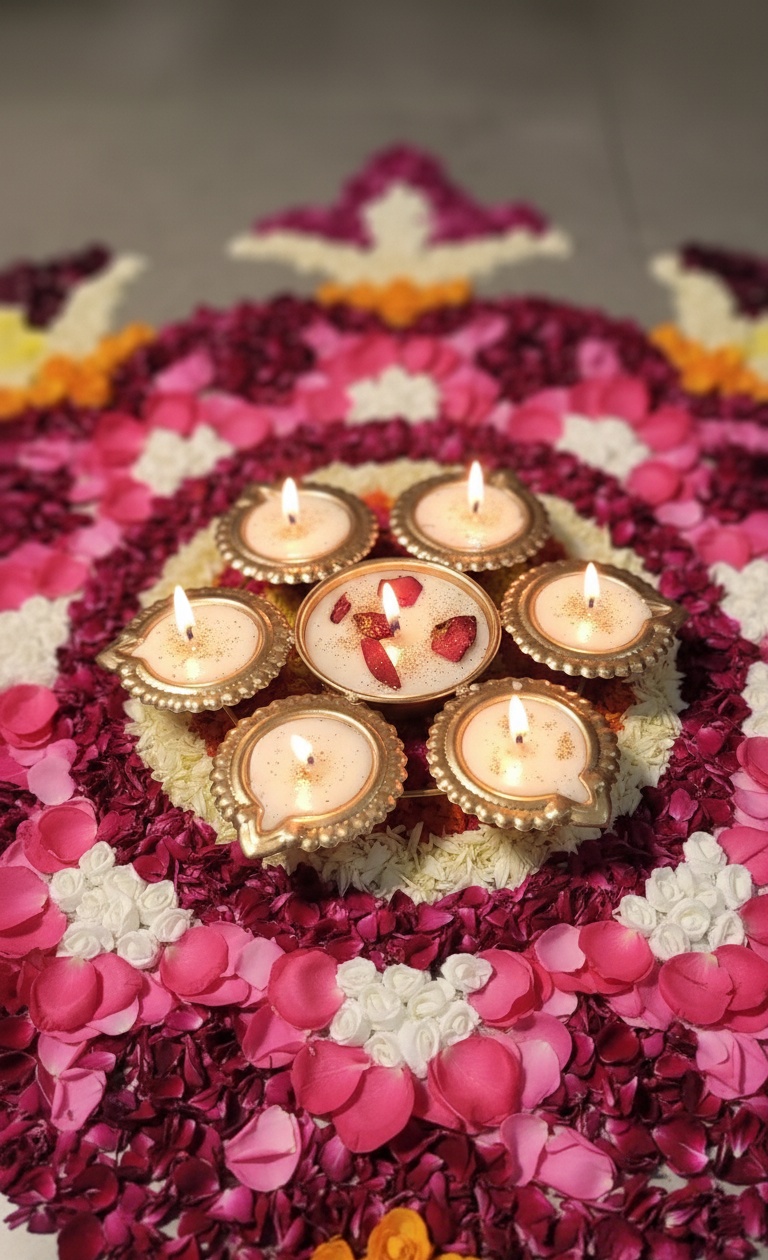 ### **6 Diya Metal Urli Candle with Center Bowl Elegant Festive Dcor**Illuminate your space with timeless elegance using our **6 Diya Metal Urli Candle with Bowl in the Middle** a stunning blend of tradition and artistry. Crafted from premium-quality metal with a luxurious finish, this urli features **six beautifully designed diyas** arranged around a **central bowl**, perfect for adding water, floating candles, or fresh flower petals.#### **Key Features:*** **Elegant Design:** Intricately crafted metal urli with six diya holders surrounding a central decorative bowl.* **Premium Finish:** Available in antique gold, brass, or silver tones (customizable based on your variant).* **Versatile Use:** Ideal for festive dcor, pooja rooms, weddings, or as a centerpiece for your living or dining area.* **Multi-Purpose Bowl:** The central bowl can be used for floating candles, flowers, or aromatic potpourri.* **Perfect Gift:** A thoughtful choice for Diwali, housewarmings, anniversaries, or festive gifting.#### **How to Use:**Place the urli on a flat surface, fill the center bowl with water, add floating candles or petals, and light the surrounding diyas for a radiant, spiritual ambiance.#### **Product Dimensions (Approx.):*** Diameter: 1012 inches* Material: Metal / Brass Alloy* Finish: Antique Gold / Matte BrassBring home a piece of Indian artistry that adds light, warmth, and grace to every celebration. ---