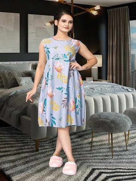 Introducing our Blue Viscose Rayon Nighty for Women, a chic and comfortable addition to your nighttime wardrobe. Crafted with precision and adorned with a charming printed pattern, this nighty is tailored to make your nights both restful and effortlessly stylish.