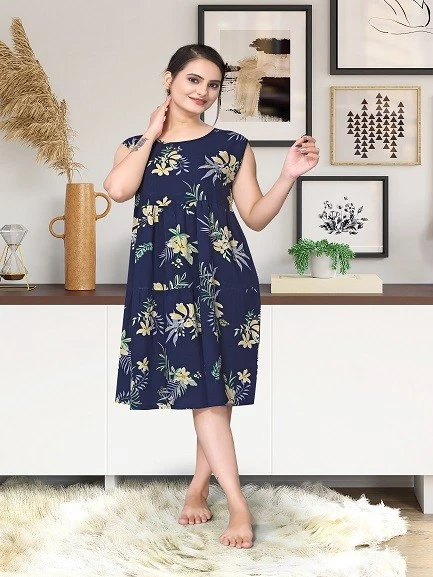 Introducing our Navy Blue Viscose Rayon Nighty for Women, a sublime fusion of comfort and style designed to elevate your bedtime wardrobe. Crafted with precision and adorned with a captivating printed pattern, this nighty is tailored to make your nights both restful and effortlessly chic.