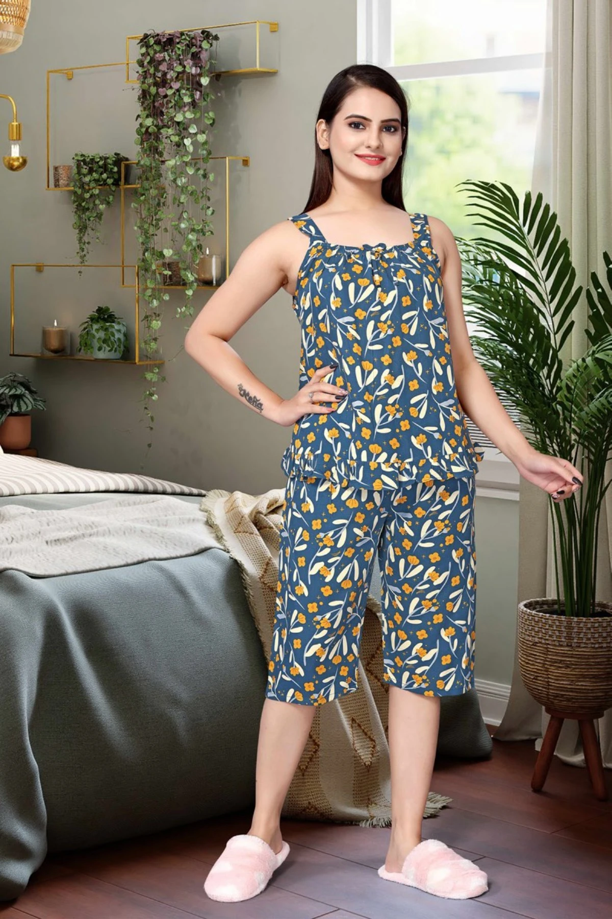 Introducing our enchanting Light Blue Night Set, a luxurious ensemble designed to transform your nights into moments of elegance and comfort. Crafted from the finest Viscose Rayon fabric, this Nighty Set features a graceful Printed pattern, adding a touch of sophistication to your Western Wear collection.