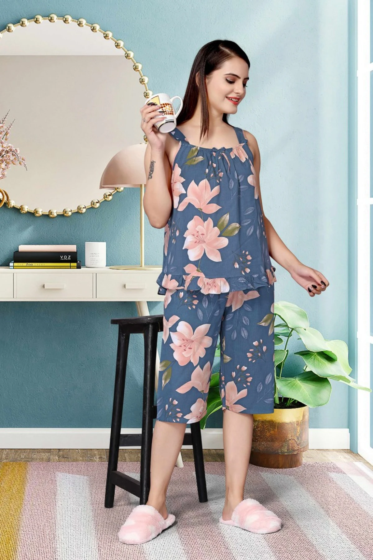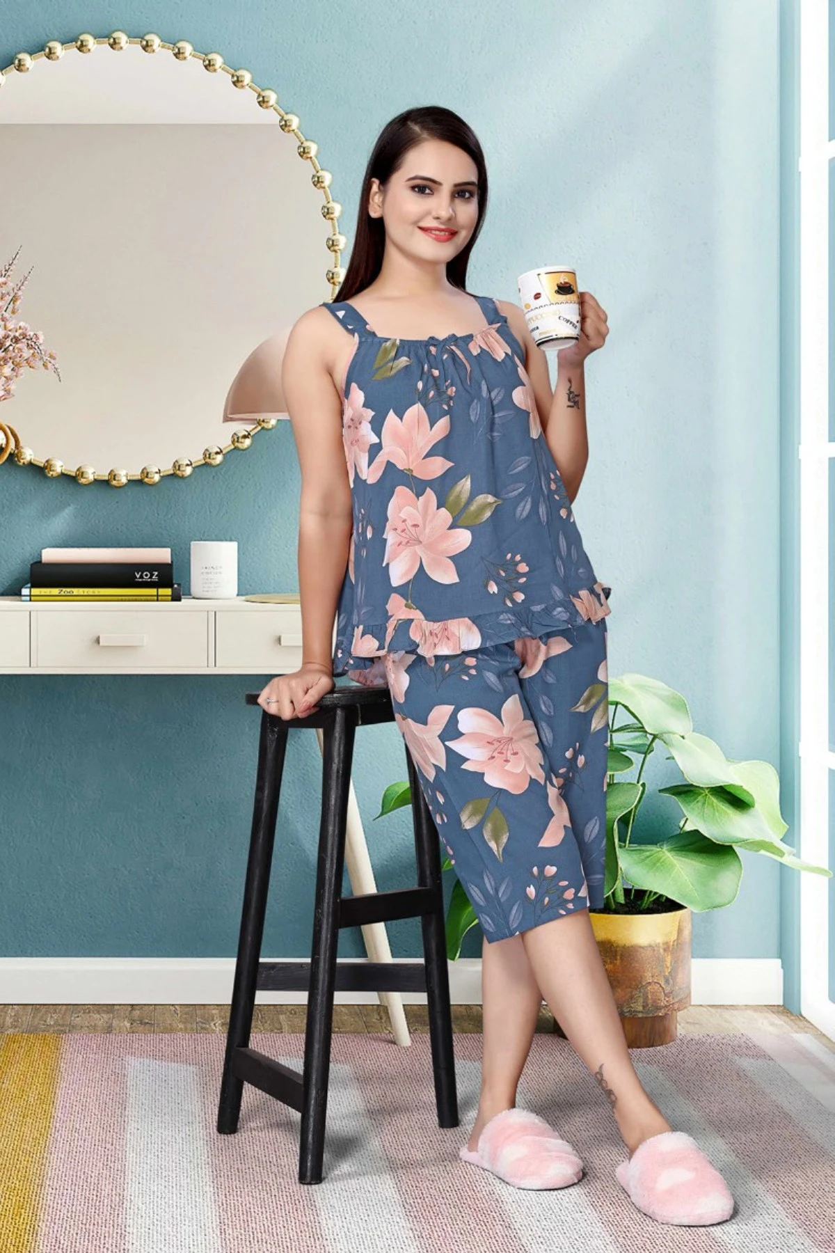 Introducing our sophisticated Grey Night Set, a stylish ensemble designed to bring a touch of luxury and comfort to your nights. Immerse yourself in the soft embrace of Viscose Rayon fabric, adorned with a chic Printed pattern that adds a modern flair to your Western Wear collection.