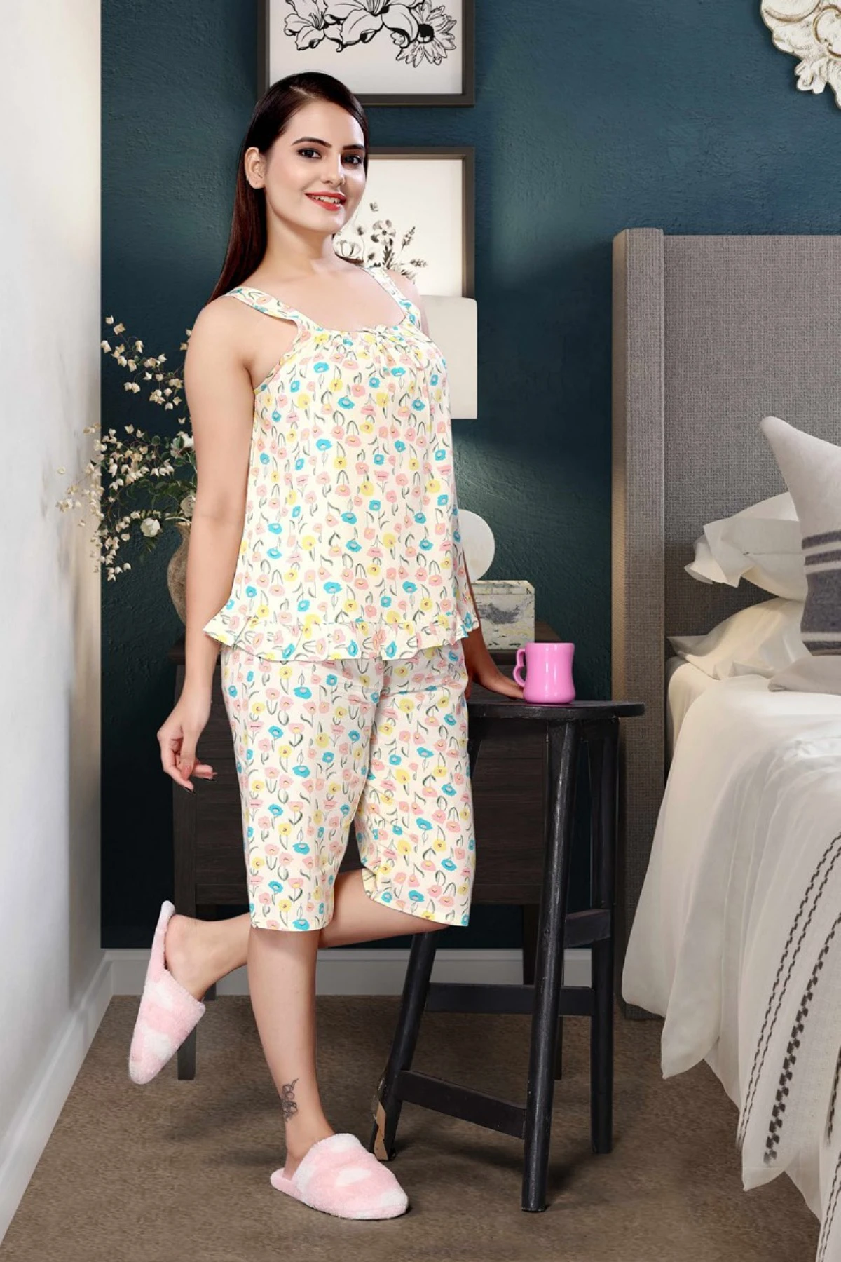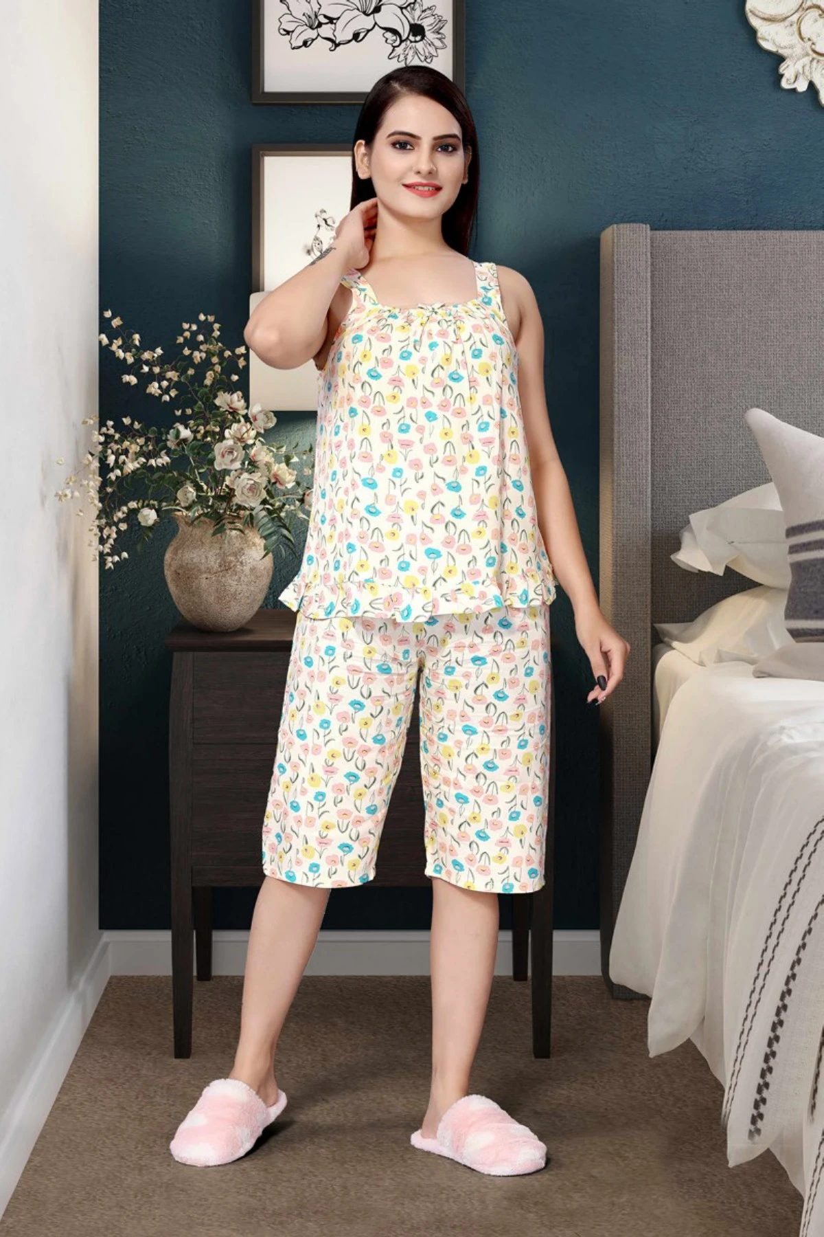Introducing our radiant Yellow Night Set, a stunning ensemble designed to infuse your nights with a touch of glamour and comfort. Immerse yourself in the luxurious feel of Viscose Rayon fabric, adorned with a chic Printed pattern that adds a playful yet sophisticated charm to your Western Wear collection.