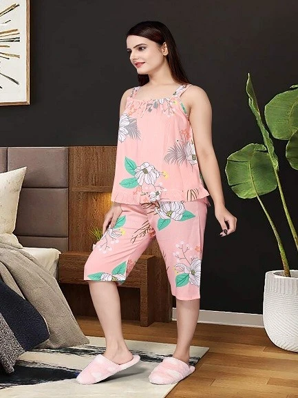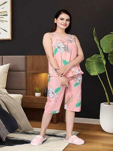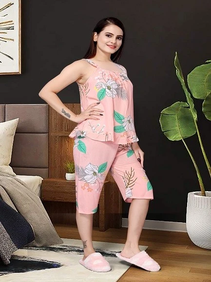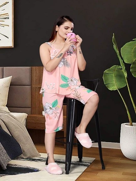 Introducing our charming Pink Night Set, a meticulously crafted ensemble designed to elevate your evenings with a perfect blend of style and comfort. Immerse yourself in the luxurious feel of Viscose Rayon fabric, adorned with a delightful Printed pattern that adds a touch of playfulness to your Western Wear collection.