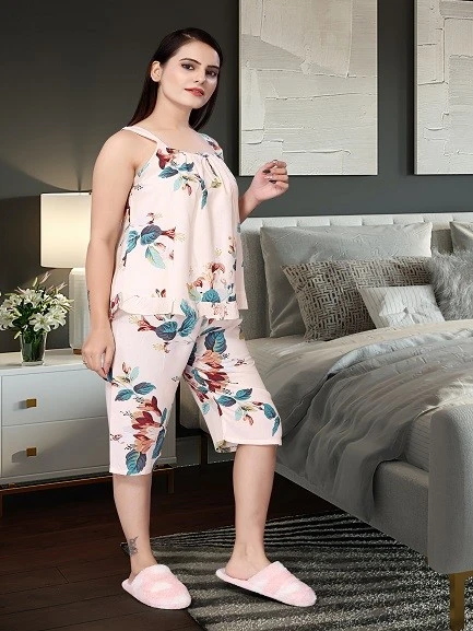 Introducing our luxurious Skin Night Set, a tastefully crafted ensemble designed to envelop your nights in both comfort and style. Immerse yourself in the gentle embrace of Viscose Rayon fabric, adorned with an elegant Printed pattern that adds a touch of sophistication to your Western Wear collection.