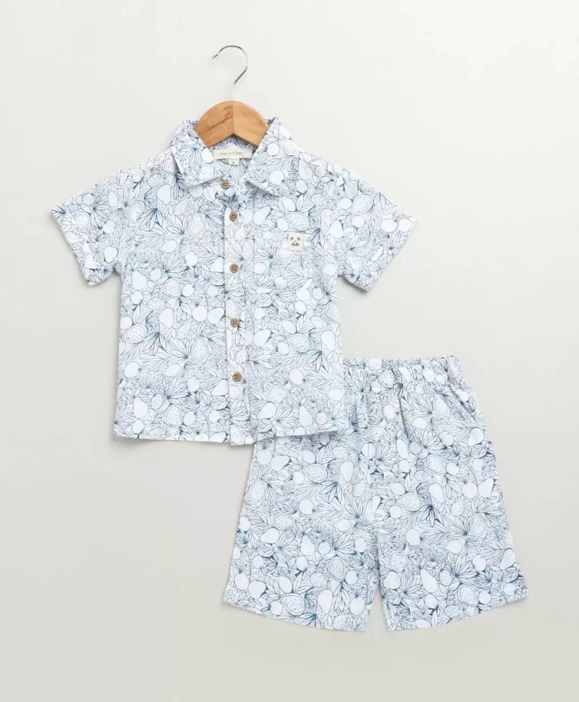 Tag: cotton kids wear boys wear set clothes clothing boys combo blue lemon white lemon print blue and white